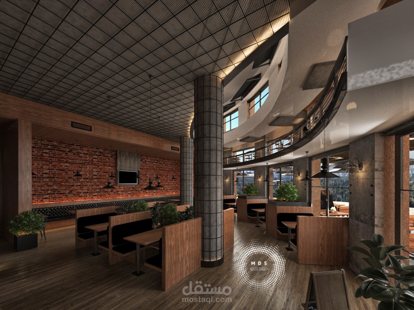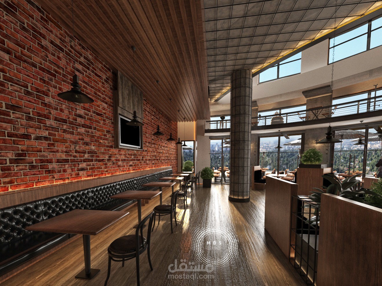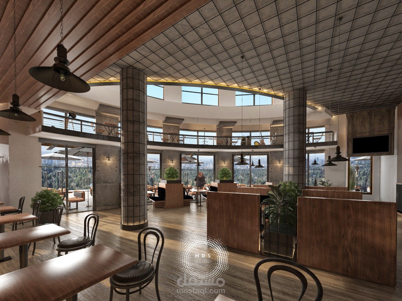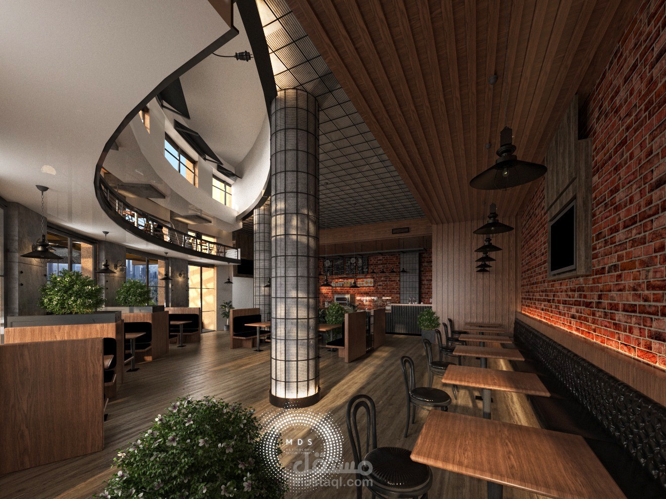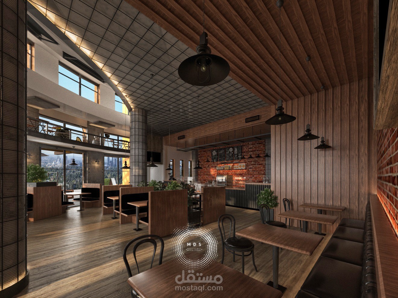 تصميم داخلى و تجسيد للفرش الخارجى لكافيه بمدينتى
