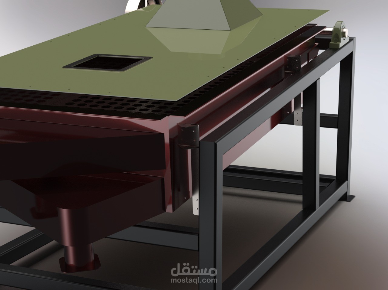 "My design is a high-efficiency screener machine crafted in SolidWorks. It features a robust frame supporting a vibrating deck for particle separation. A user-friendly hopper feeds materials onto the deck. Safety measures include guards and an emergency stop. Precisely engineered screens ensure effective separation. The drive system and electrical components are integrated seamlessly. Rigorous SolidWorks testing ensures optimal performance, and a detailed BOM simplifies manufacturing."