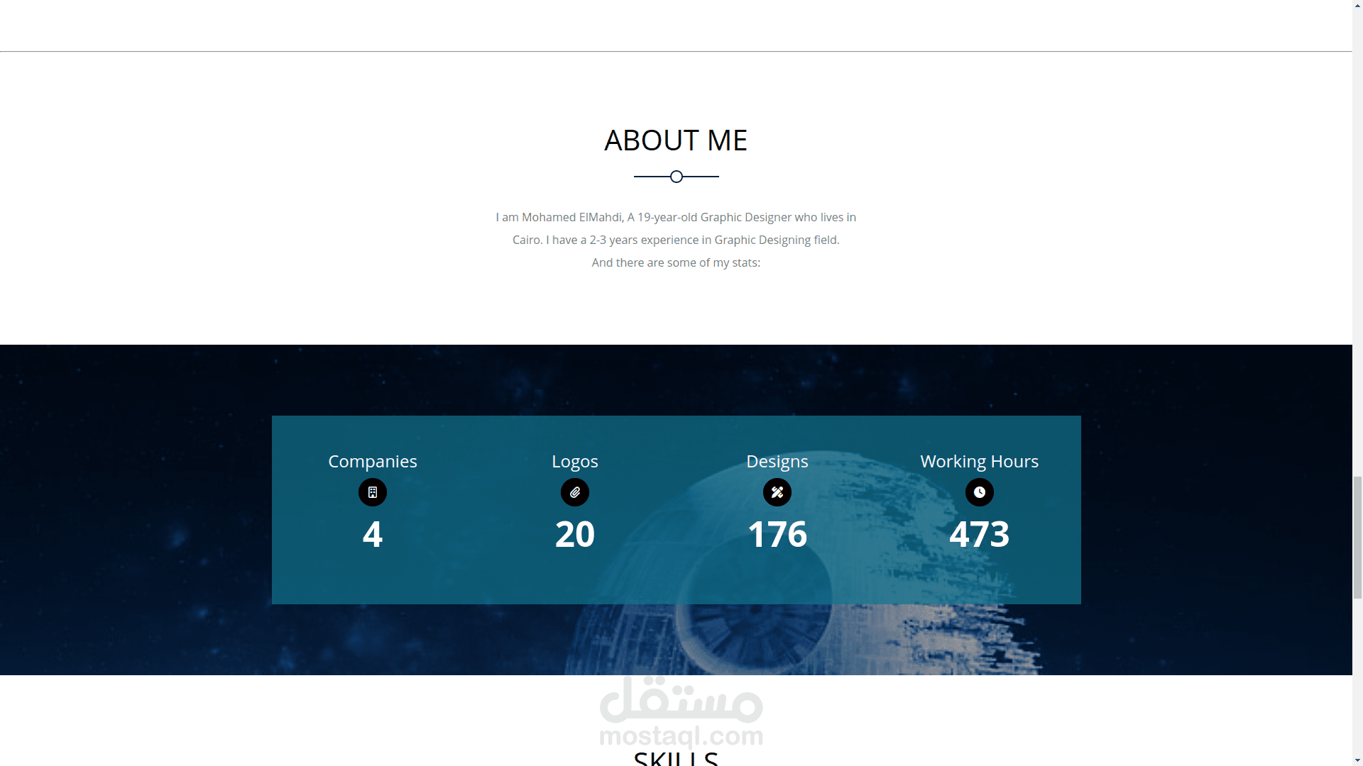 لقد قممت بتصميم هذا الموقع لصديقي الذي يعمل كمصمم جرافيك كممارسة لي علي الفرونت اند