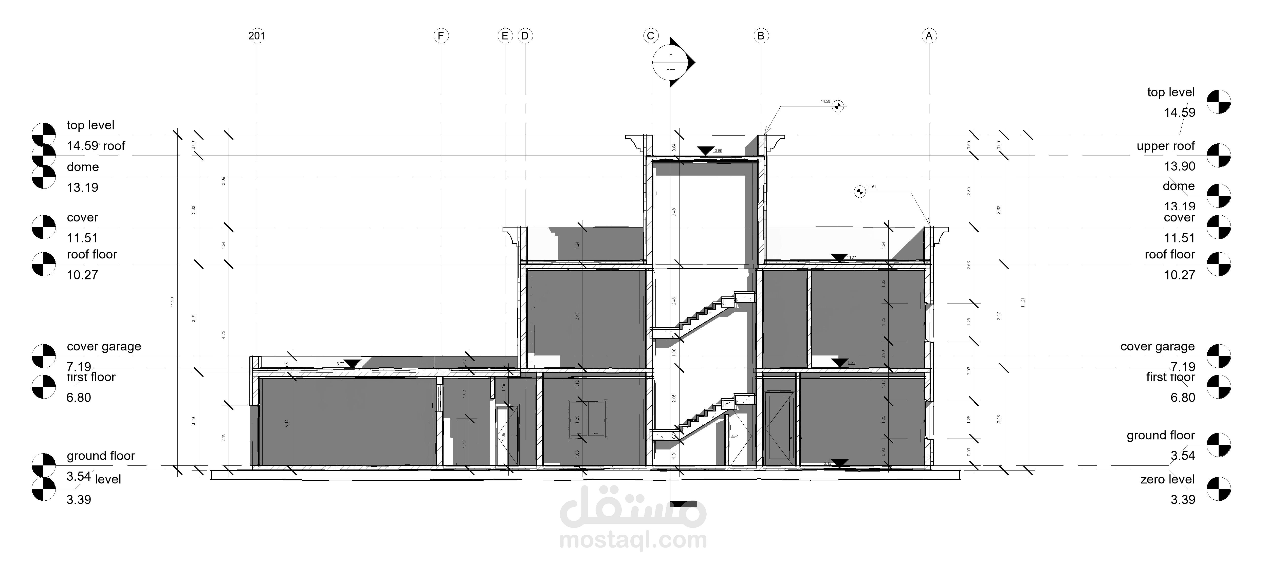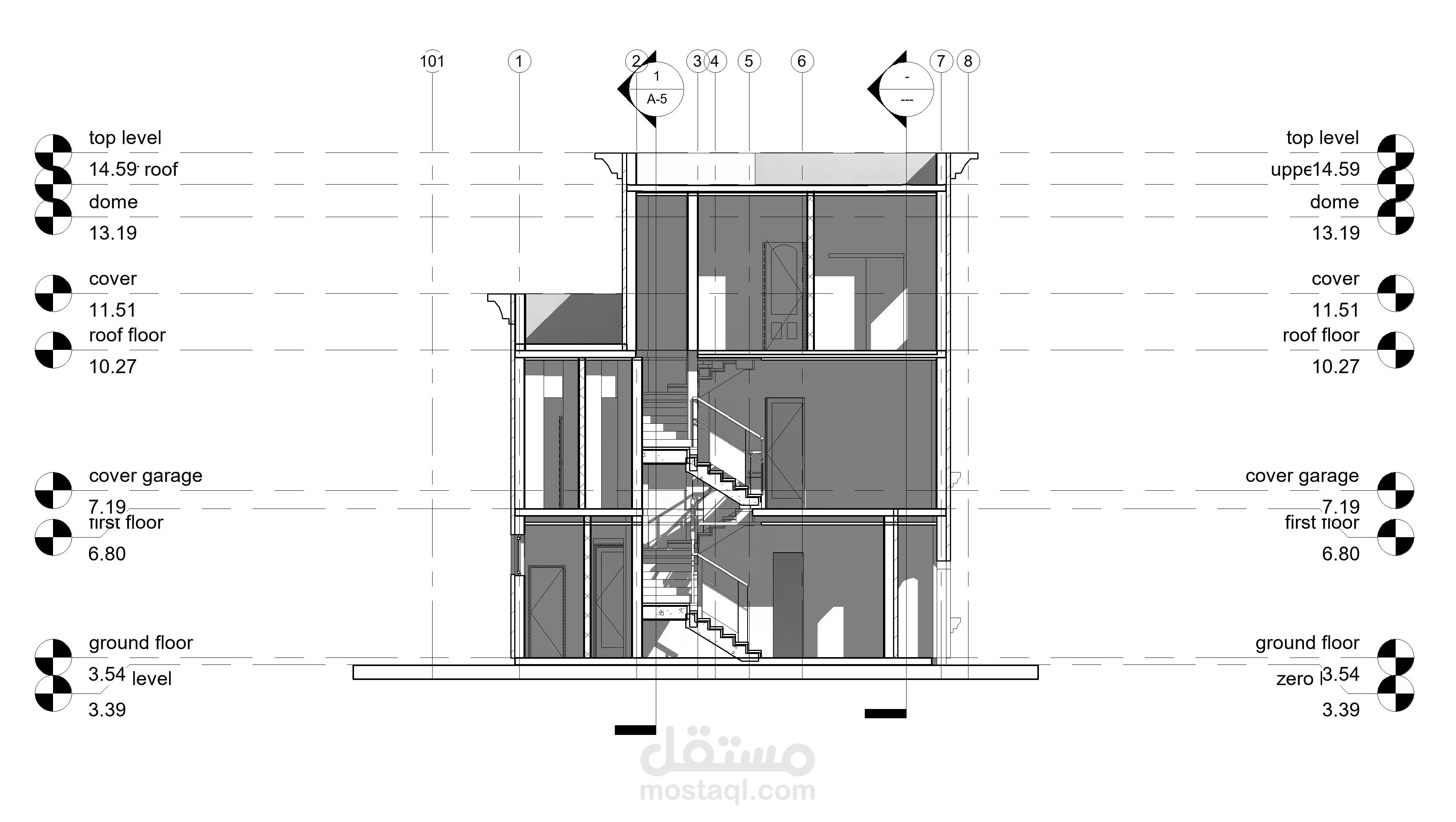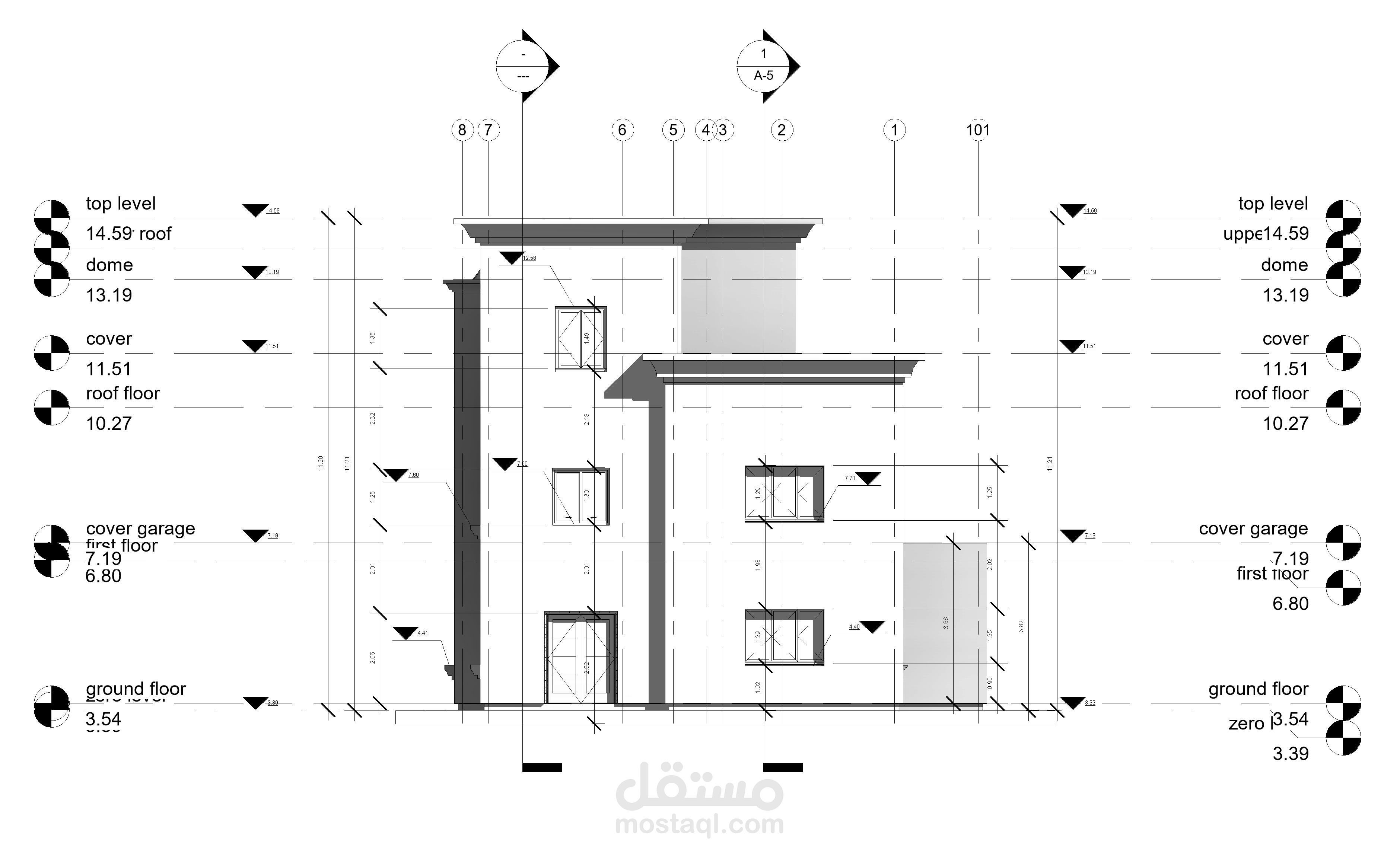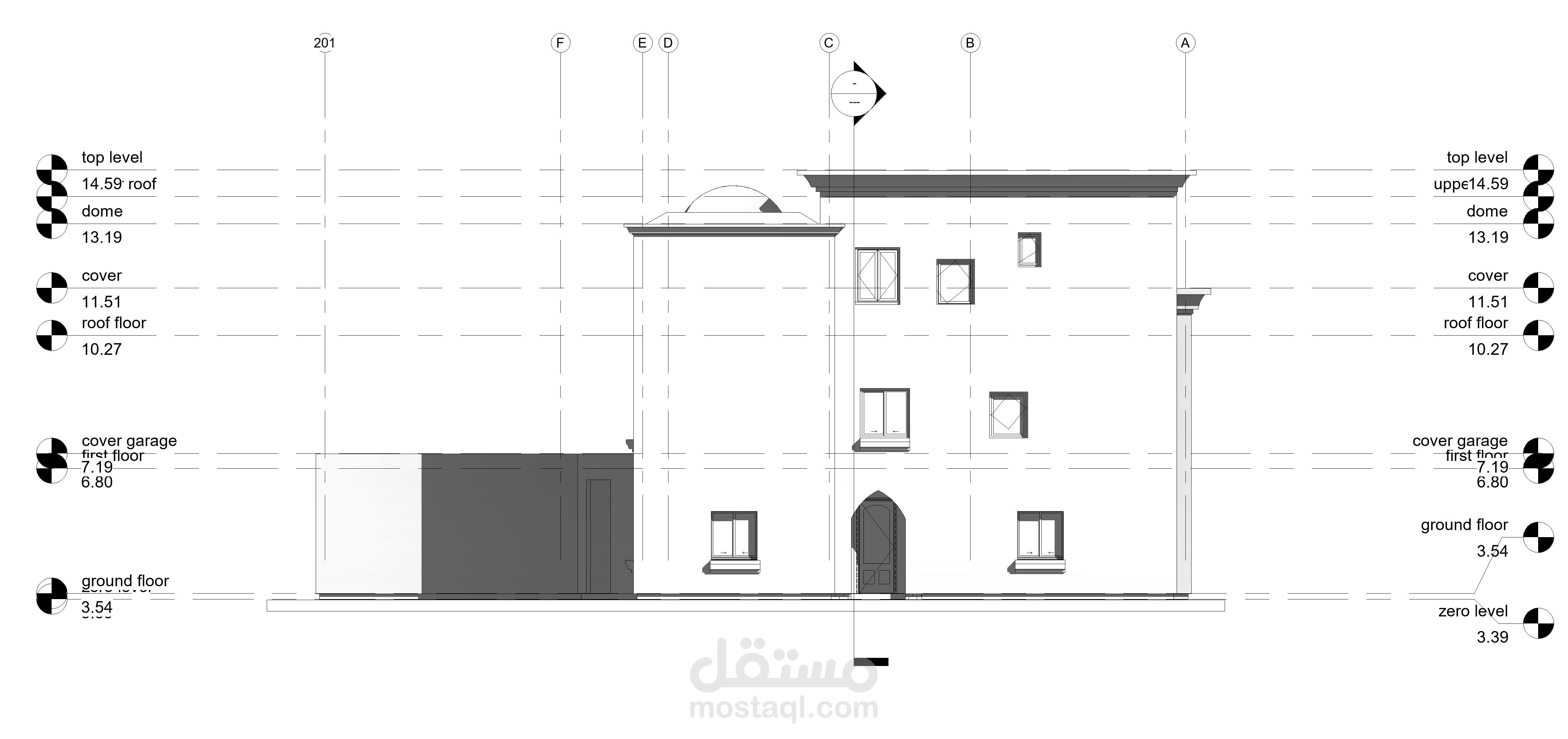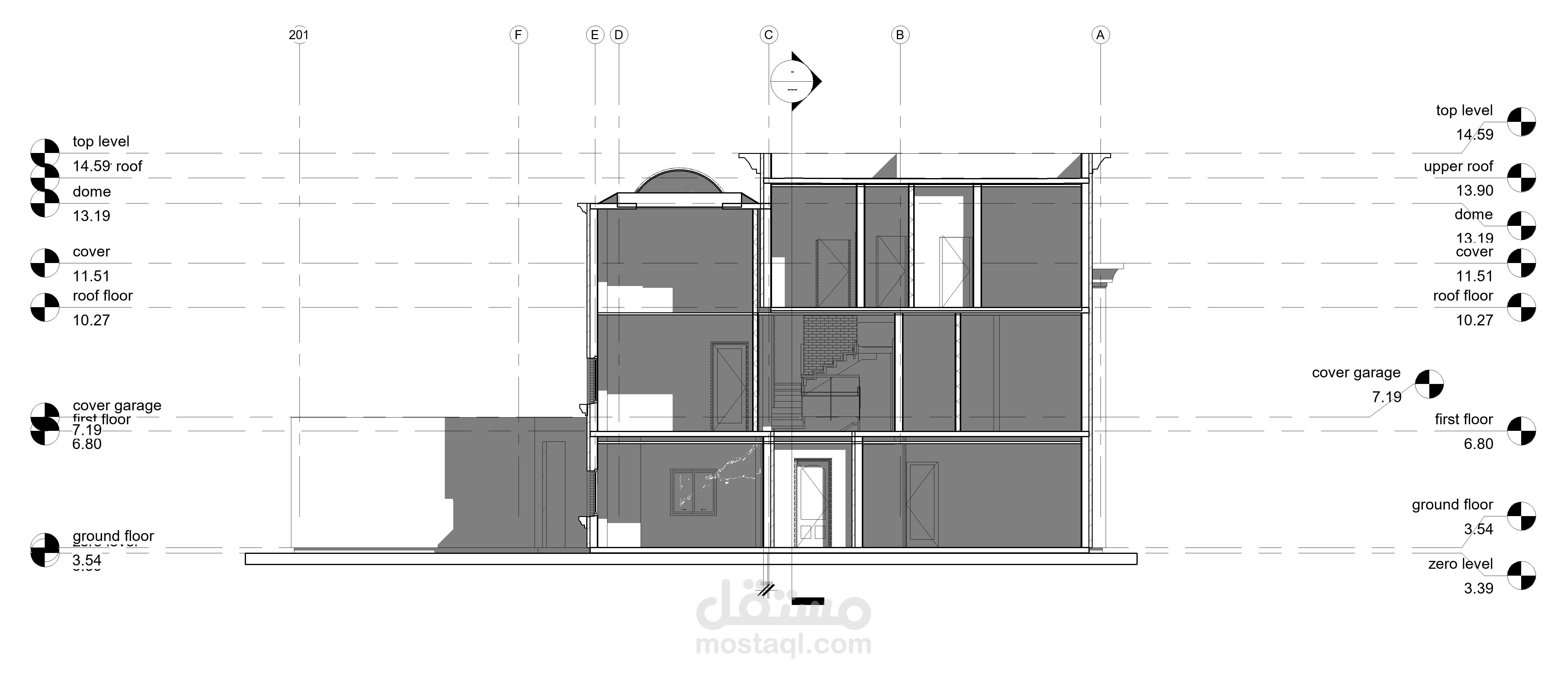 مشروع فيلا بأستخدام تكنولوجيا BIMعن طريق استخدام برامج كالريفيت والاوتوكاد وعمل الرسومات التنفيذية لها