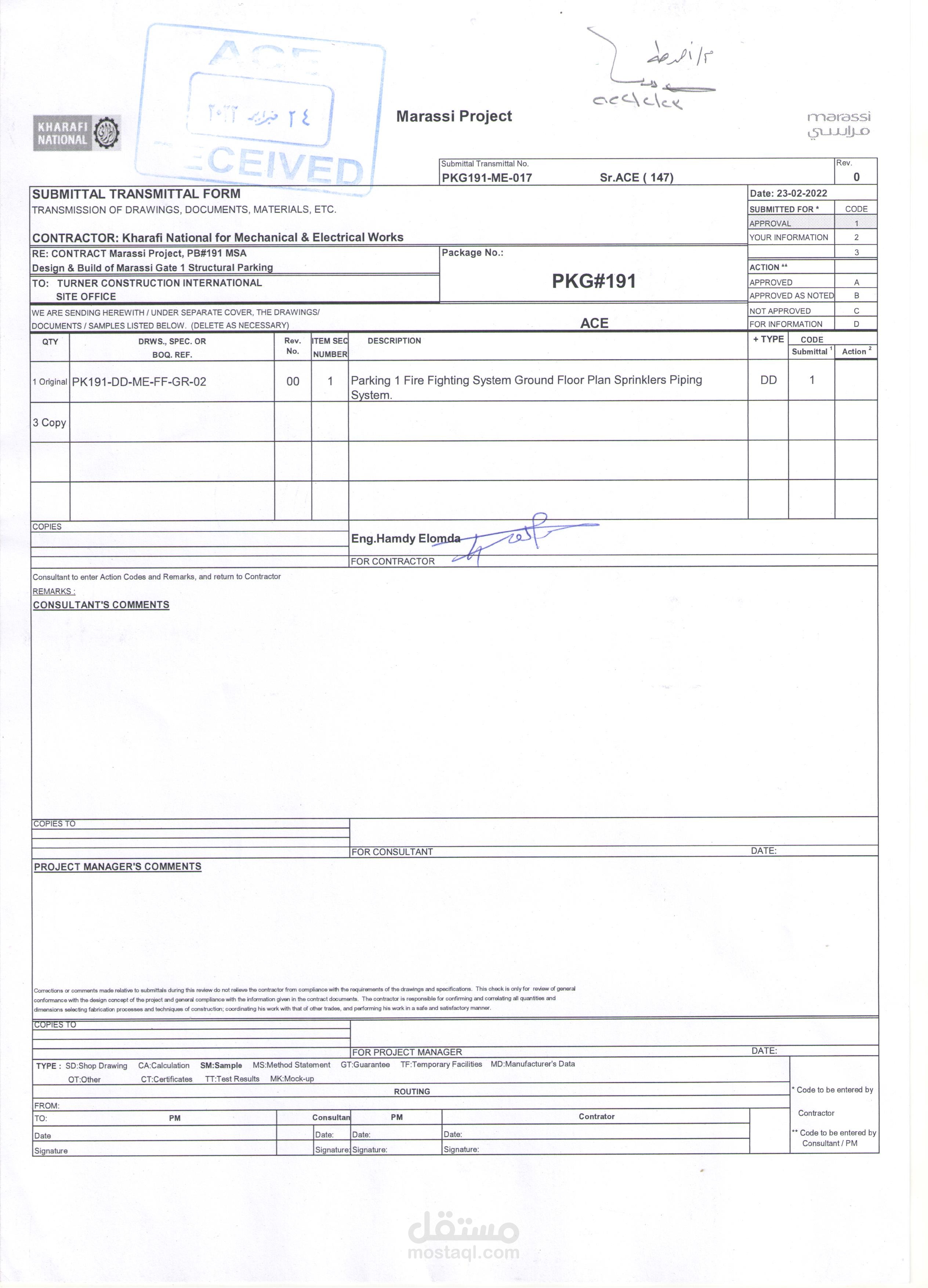 Submittal Transmittal Form .Transmittal of Documents,Materials , Etc