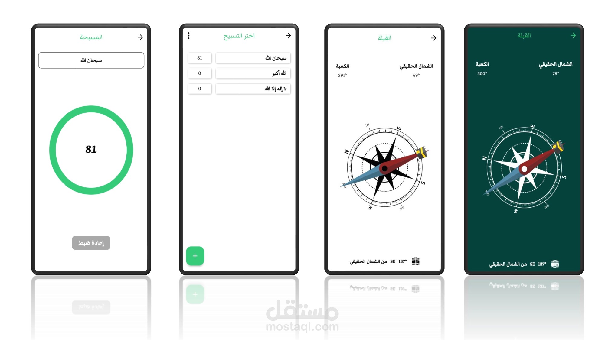 7.تحديد اتجاه الفبلة: يتضمن التطبيق تحديد اتجاه القلبة مع تعريف وتحديد المكان الذى تتواجد فيه.