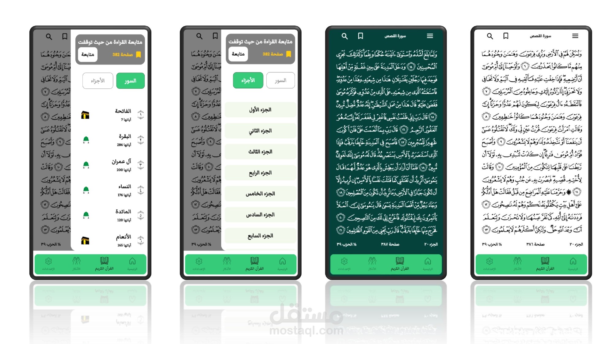 2.القران الكريم: يحتوى على جميع سور القران مع عرض المقطع الصوتى لكل سورة مع عرض لكل اية وايضا الترجمة الى اللغة الانجليزية