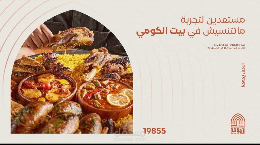 انشاء هوية بصرية كاملة لمطعم بيت الكومي بالتجمع الخامس بمصر