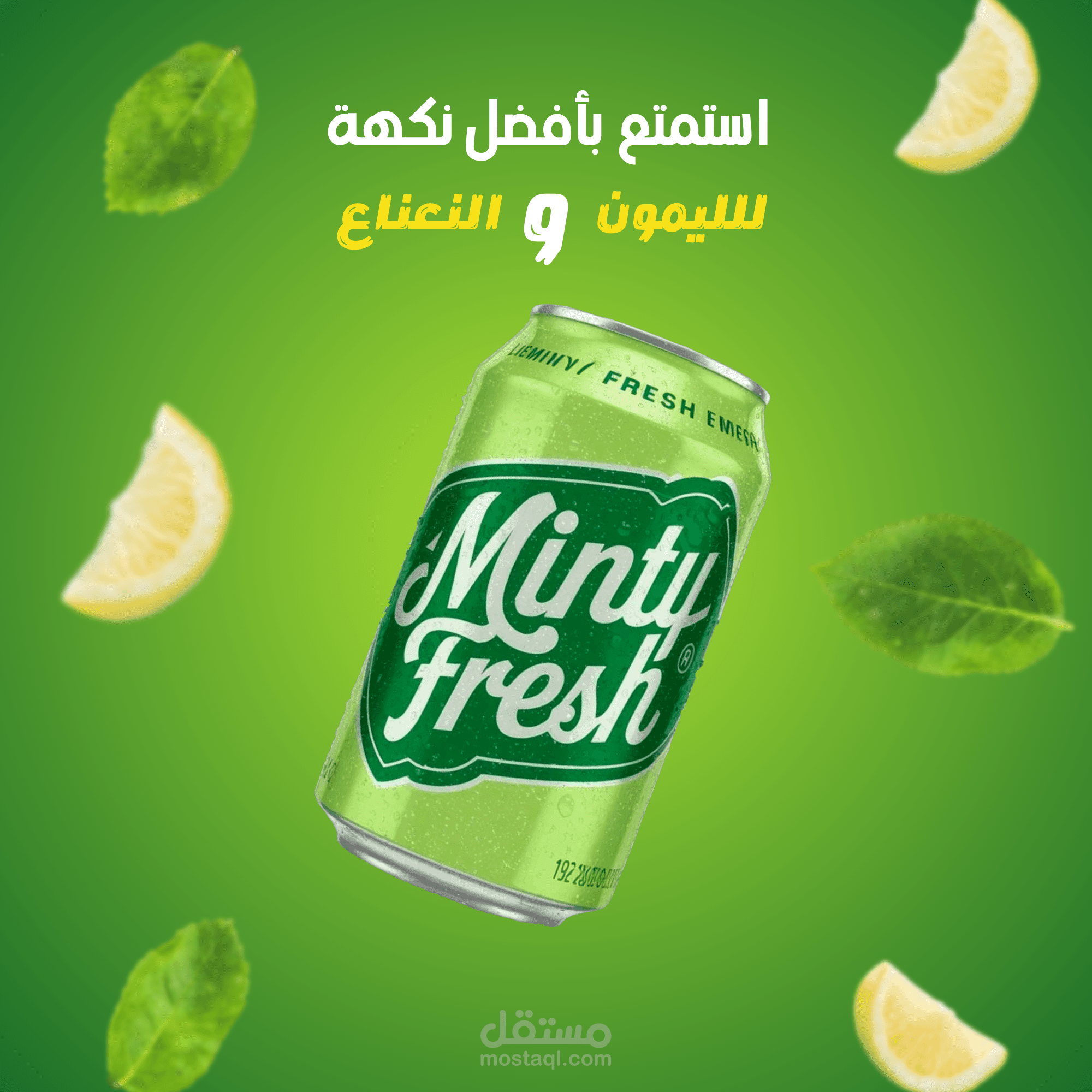 قمت بتصميم نموذج اعلان سوشيال ميديا لمشروب غازي بطعم ليمون نعناع