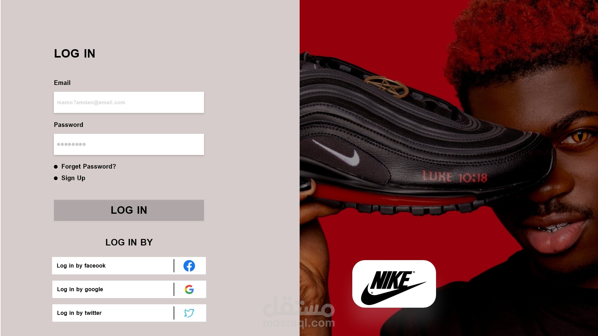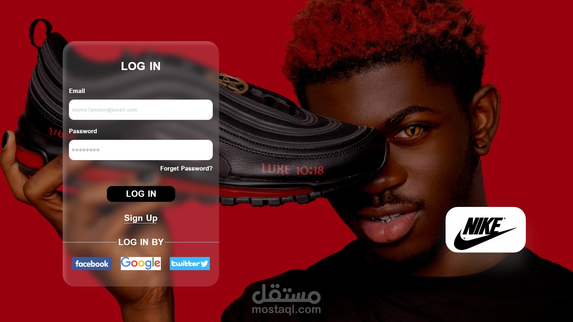 هو تصميم UI/UX لواجهة ويب (Log In) لموقع رياضي تابع لشركة NIKE