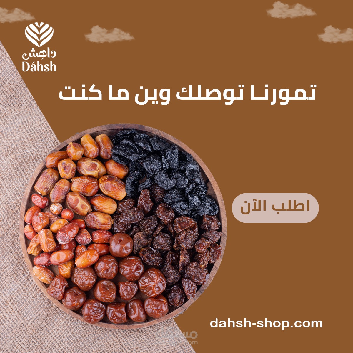 تصميم سوشيال ميديا ل شركة تمور Dahsh ( داهِش ) كاروسيل كامل ل الإنستقرام