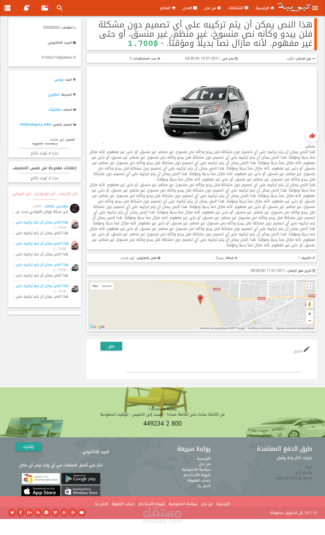 خارطة إعلانات في الصفحة الرئيسية تظهر للزائر كل الإعلانات التي تكون قريبة له.