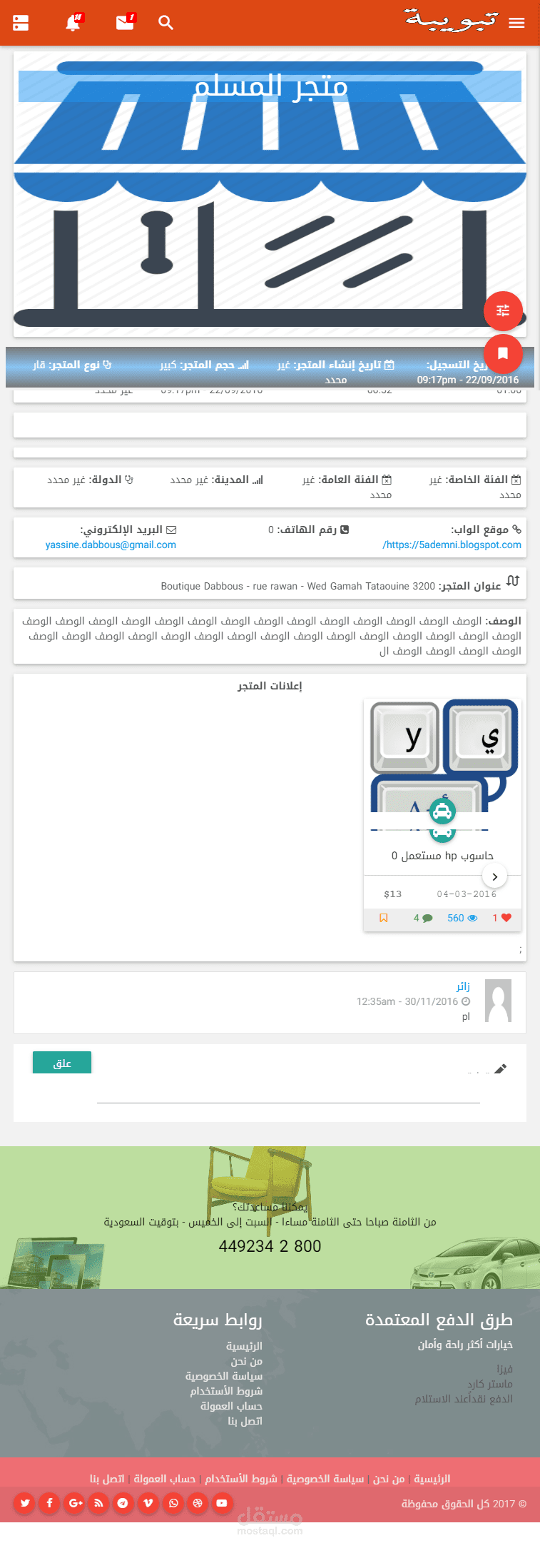 امكانية اضافة تعليقات على المتاجر و متابعتها