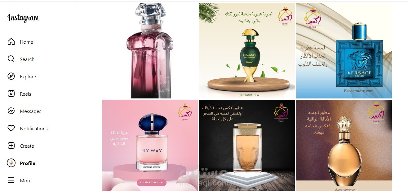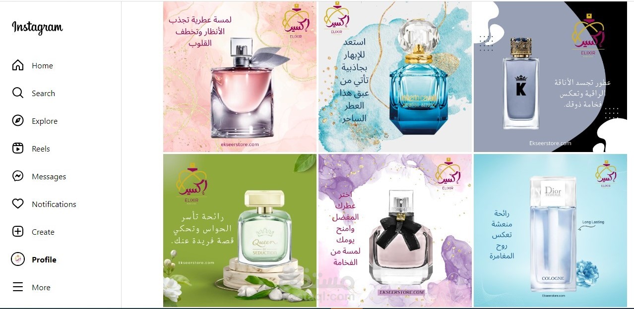 تم عمل بوستات يوميه لمدة اسبوع لصفحة انستجرام خاصه بالعطور وتصميم اكثر من 90 بوست مع فيدوهات خاصه للعطور وكتابه وصف وهاشتاج للعطور مع البوست
