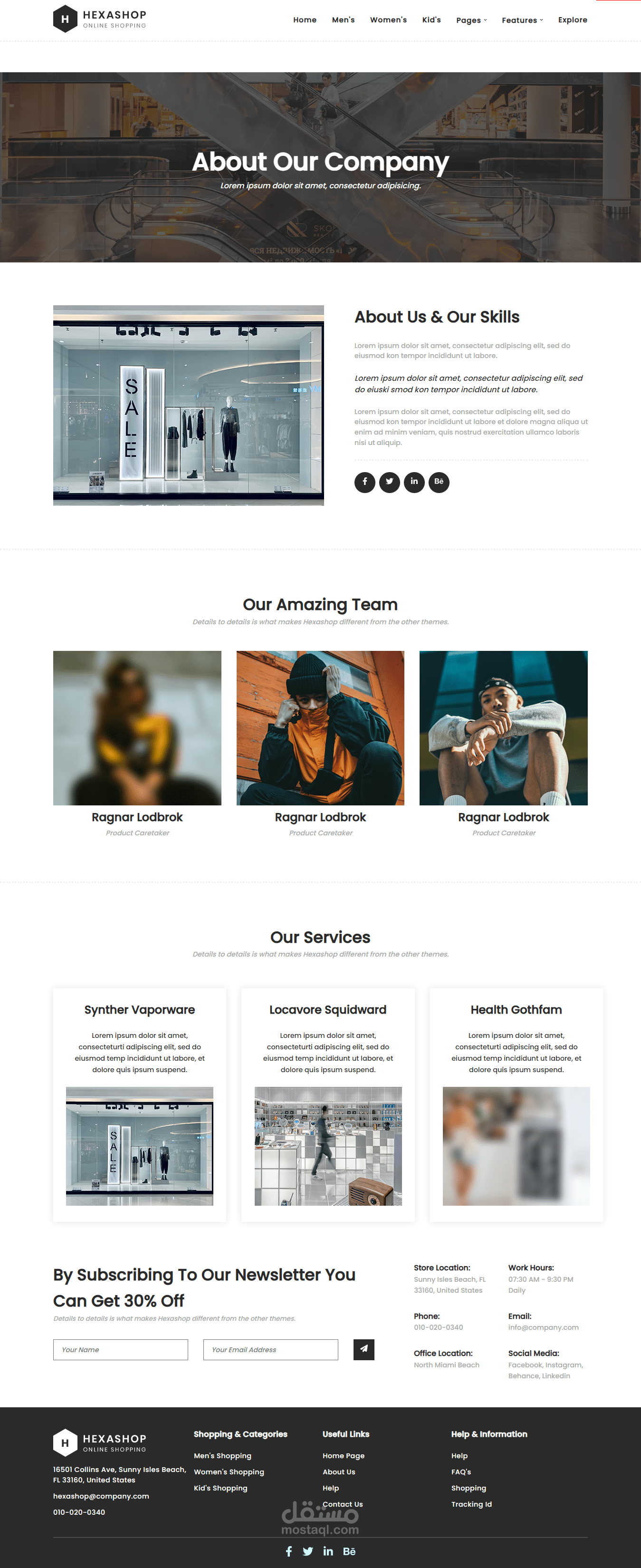هي صفحات تعريفيه لشركه Hexashop الوهميه و منتجاتها