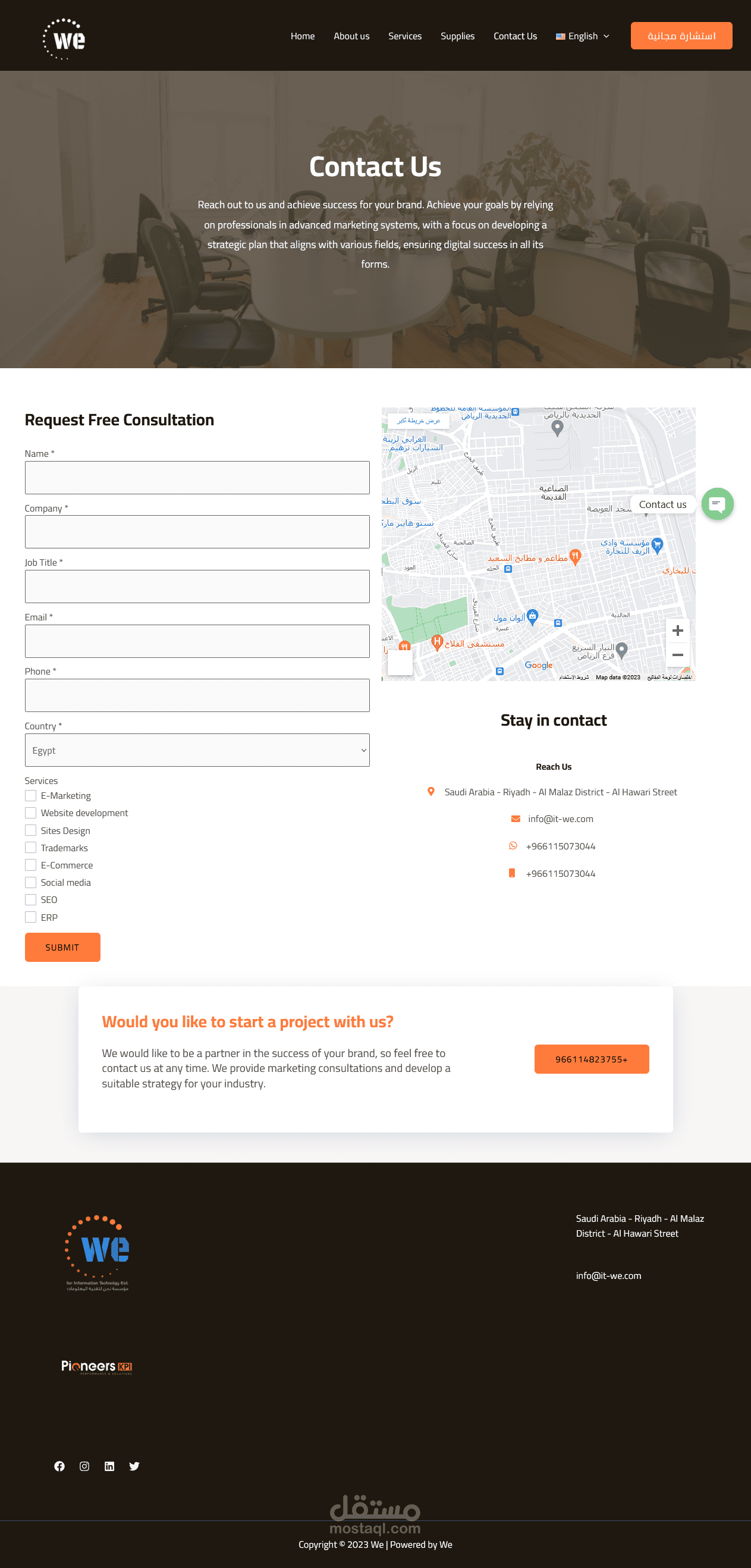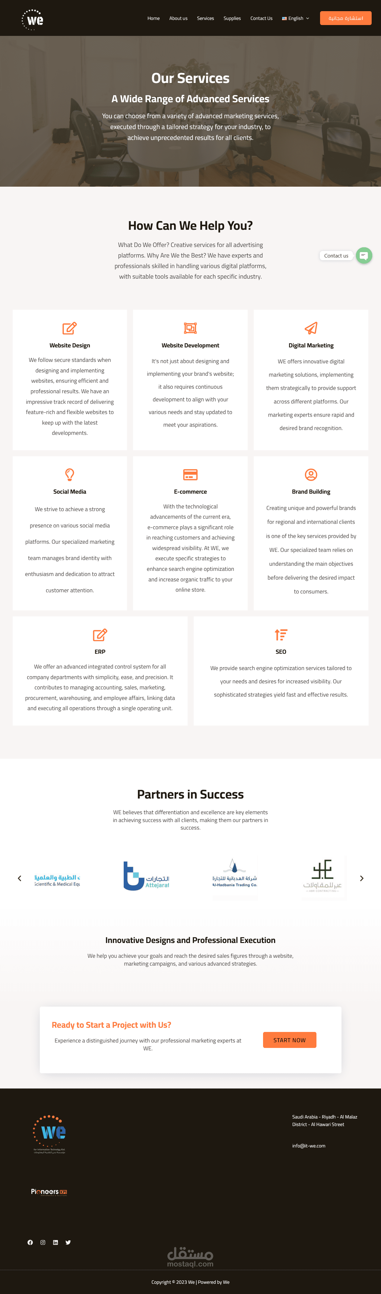موقع الكترونى لشركه تسويق الكترونى فى السعودية يتوفر بلغتين العربية و الانجليزية تم بناءه على الووردبريس