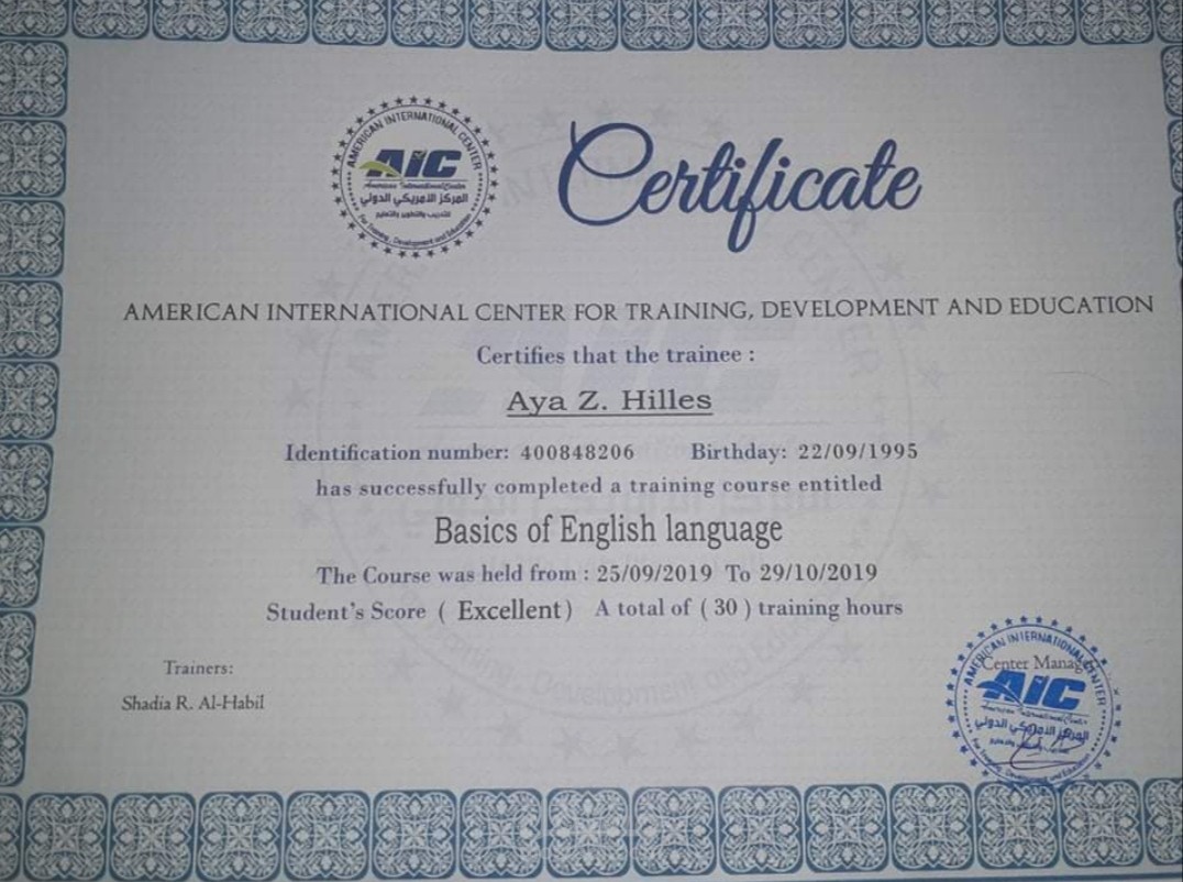 حصلت على دورة Basics Of English Language