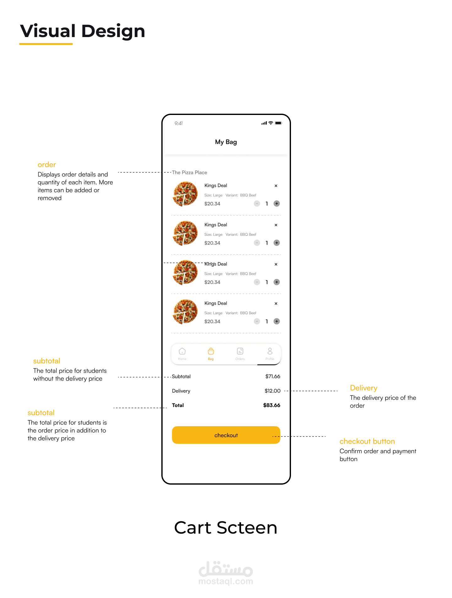 توصيل طعام عبارة عن تطبيق يهدف إلى تسهيل عملية طلب الطعام وتوصيله للزبائن من مطاعم مختلفة. يشمل المشروع تصميم وتطوير تطبيق محمول يسمح للمستخدمين بتصفح قوائم المطاعم، اختيار الوجبات، وإجراء الطلبات بسهولة. بعد ذلك، يتم توجيه الطلبات إلى مطاعم محددة، ويتم توفيرها من خلال سائقي التوصيل. الهدف من هذا المشروع هو تحسين تجربة المستخدمين وزيادة كفاءة عملية التوصيل من خلال توفير واجهة مستخدم سهلة الاستخدام وتحسين العمليات الداخلية للأعمال المطاعم وفرق التوصيل.