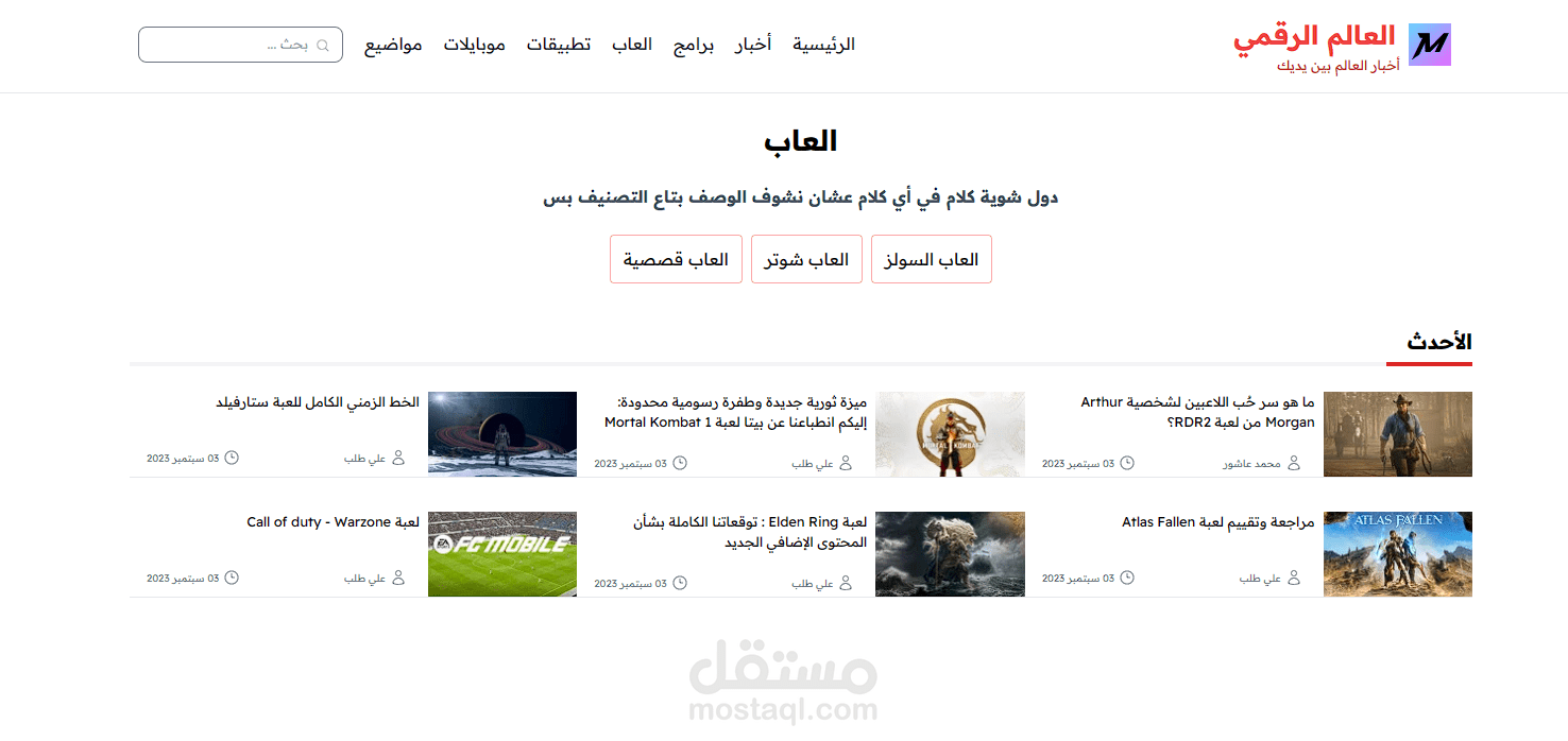 موقع "العالم الرقمي" هو مدونة خاصة تم بناء الموقع على PHP Laravel