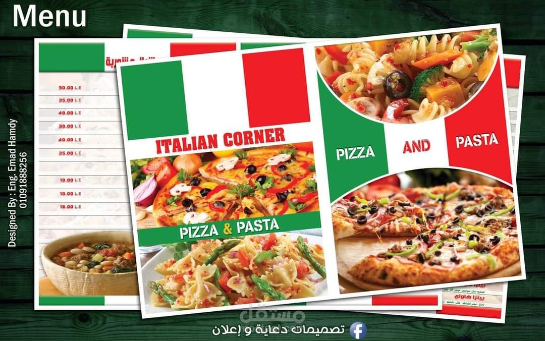 مجموعة من منيوهات المطاعم وش وظهر 4 لون