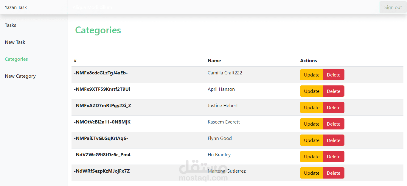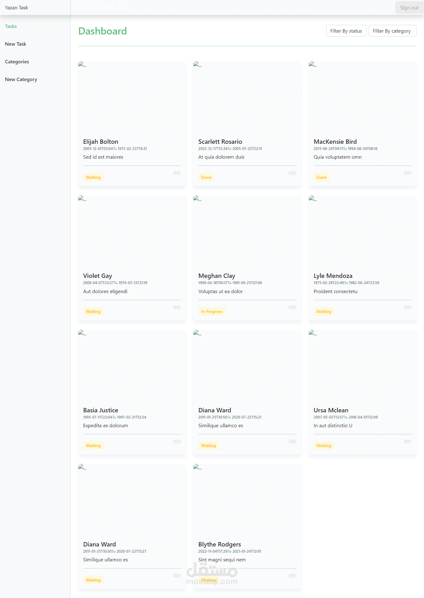 - صفحة بالمهام اليمكنك البحث عليها وفلترتها.