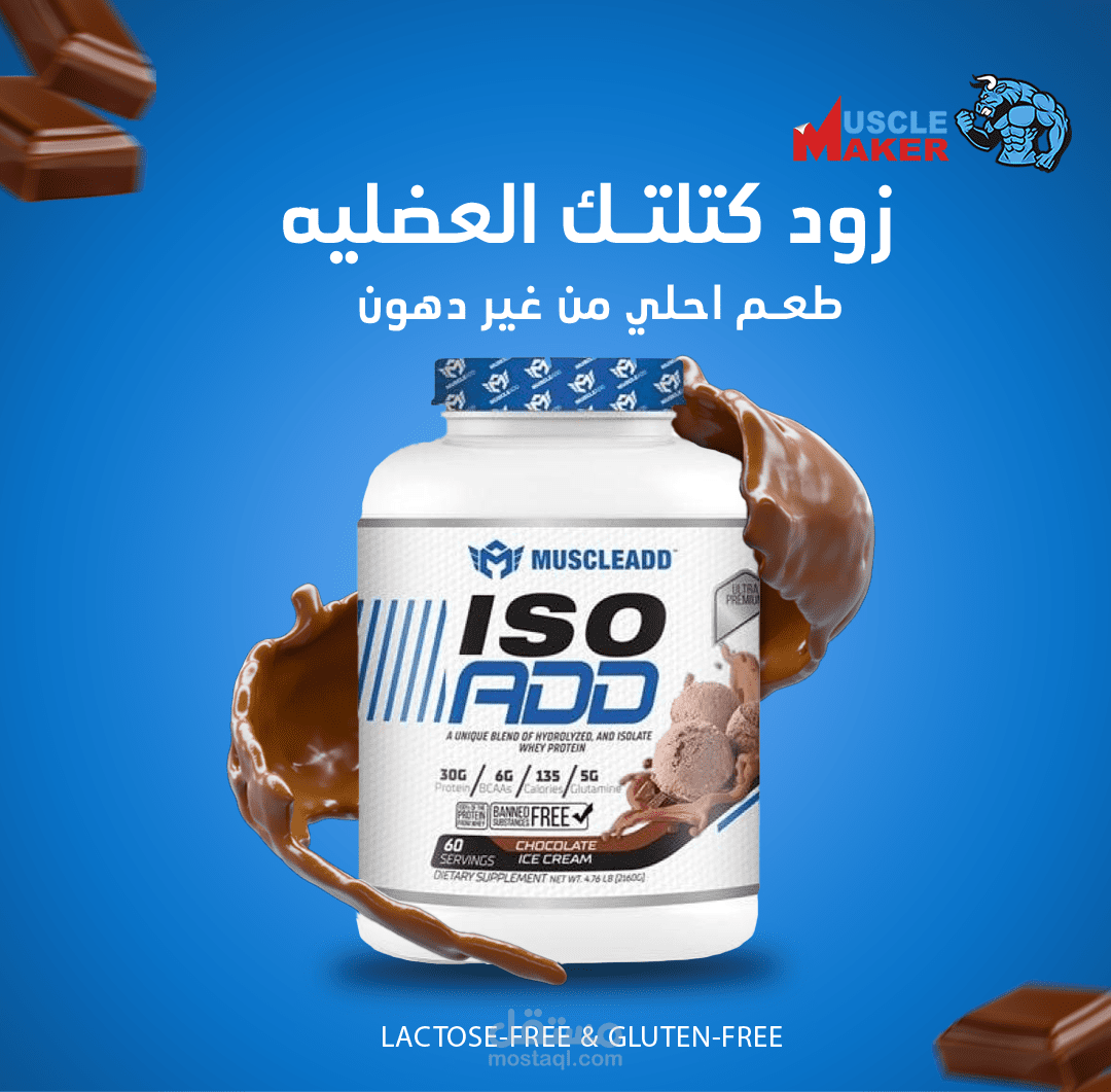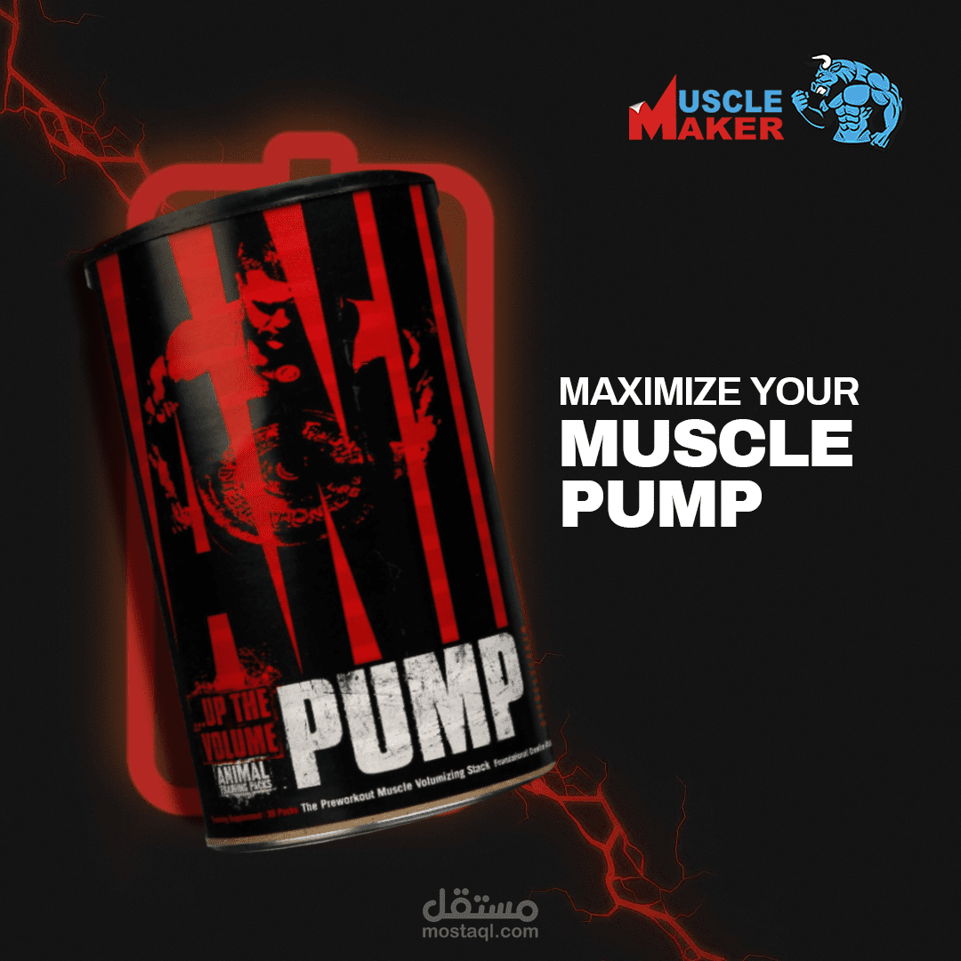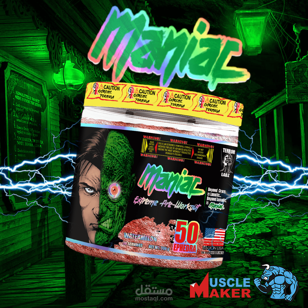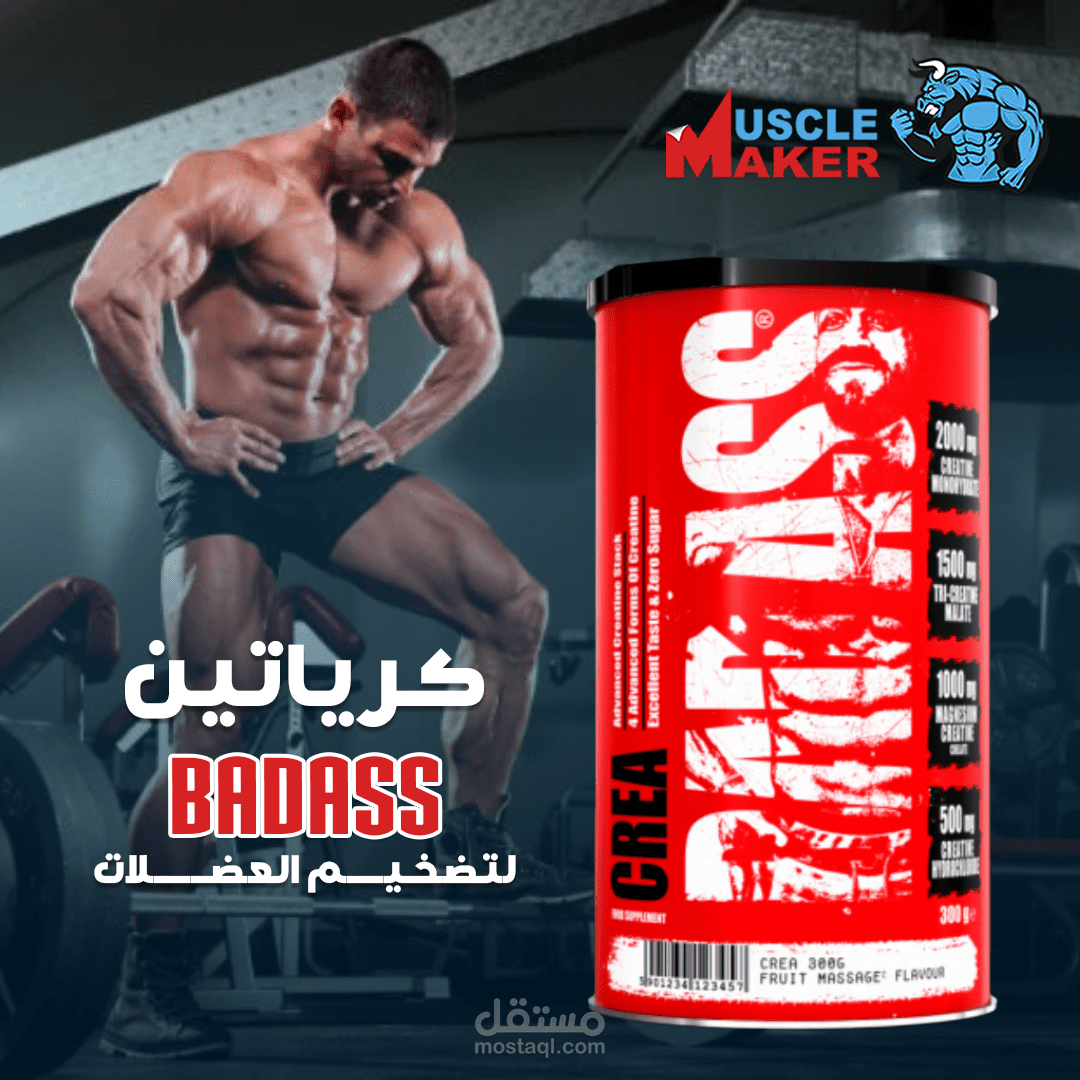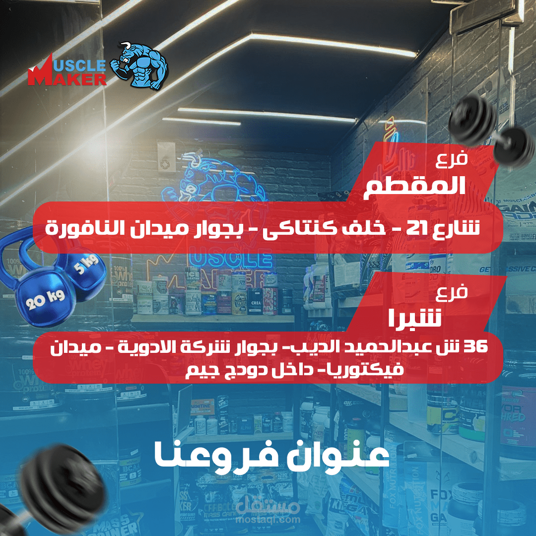 متجر بيع المكملات الغذائية والملابس الرياضية Muscle Maker