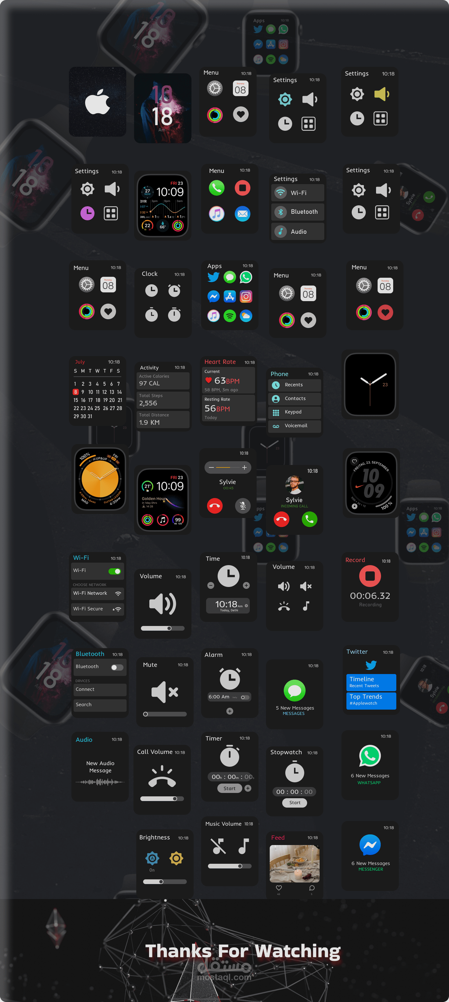 تصميم واجهة مستخدم (UI) مبتكرة وأنيقة لساعة أبل ووتش.
