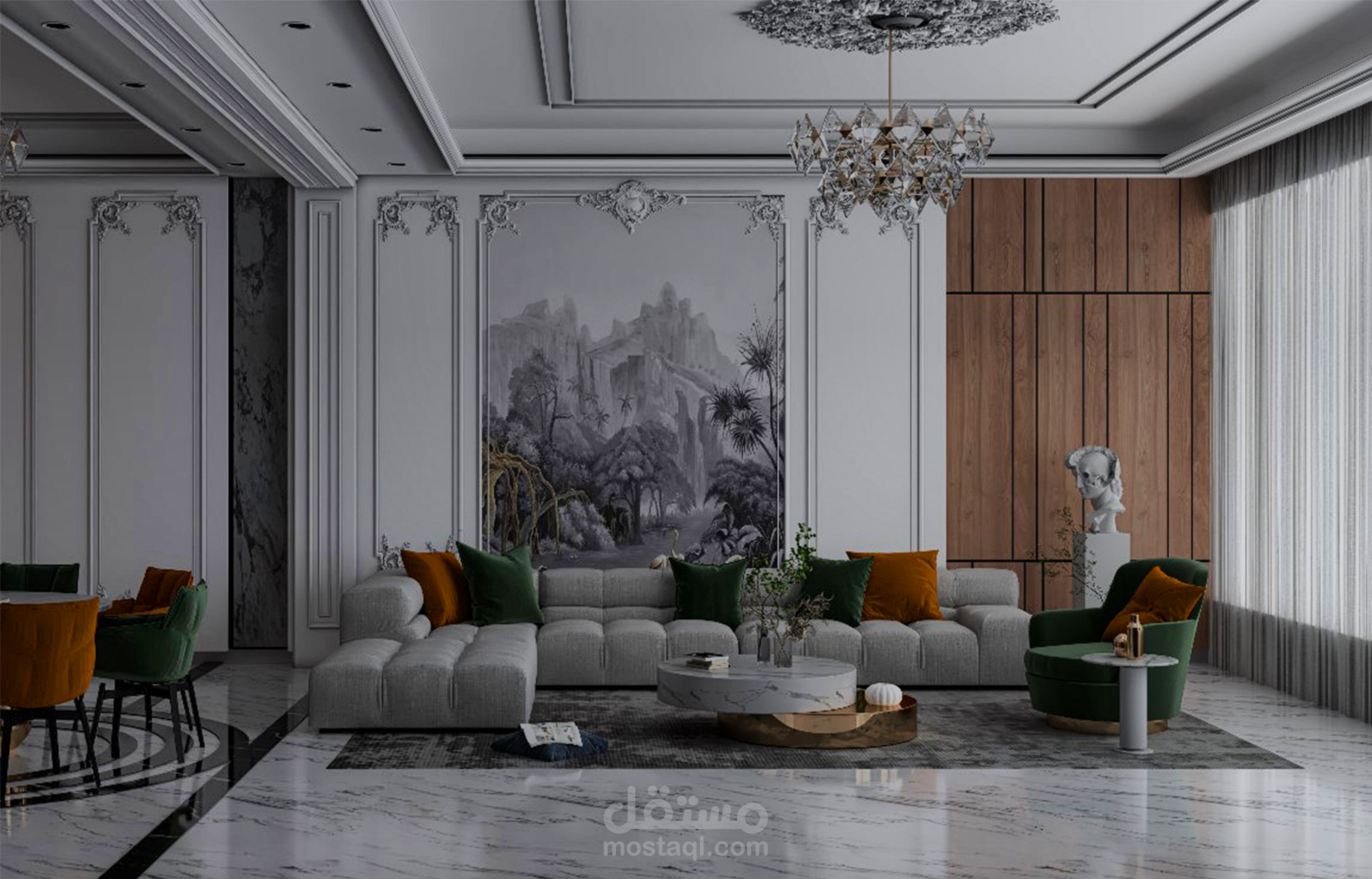 by 3d max & very modern and classic Living and dining room