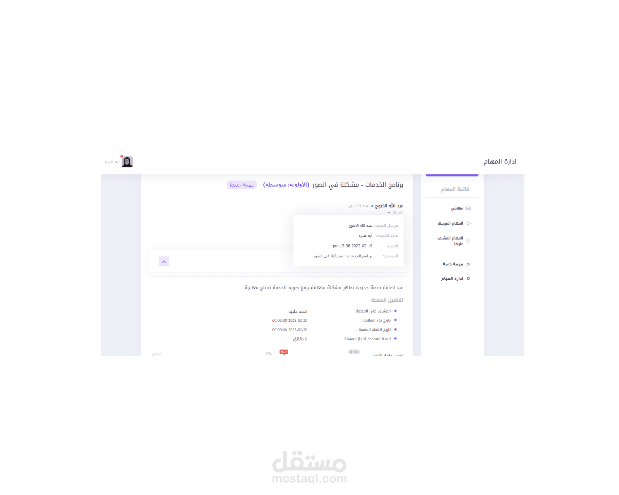 يهدف البرنامج إلى تسهيل عملية مشاركة المهام بين الموظفين ليتمكن الفرد من إرسال المهمة وتحديد الوقت المقدر لإنجازها. سيكون أيضًا قادرًا على تتبع تقدم المهمة. عند النقل إلى الاختبار، يمكن للمقدم أو المشرف رفض المهمة، أو تحديد السبب، أو تقليل مقدار الإنجاز، أو تأكيد اكتماله بتقييم الإنجاز