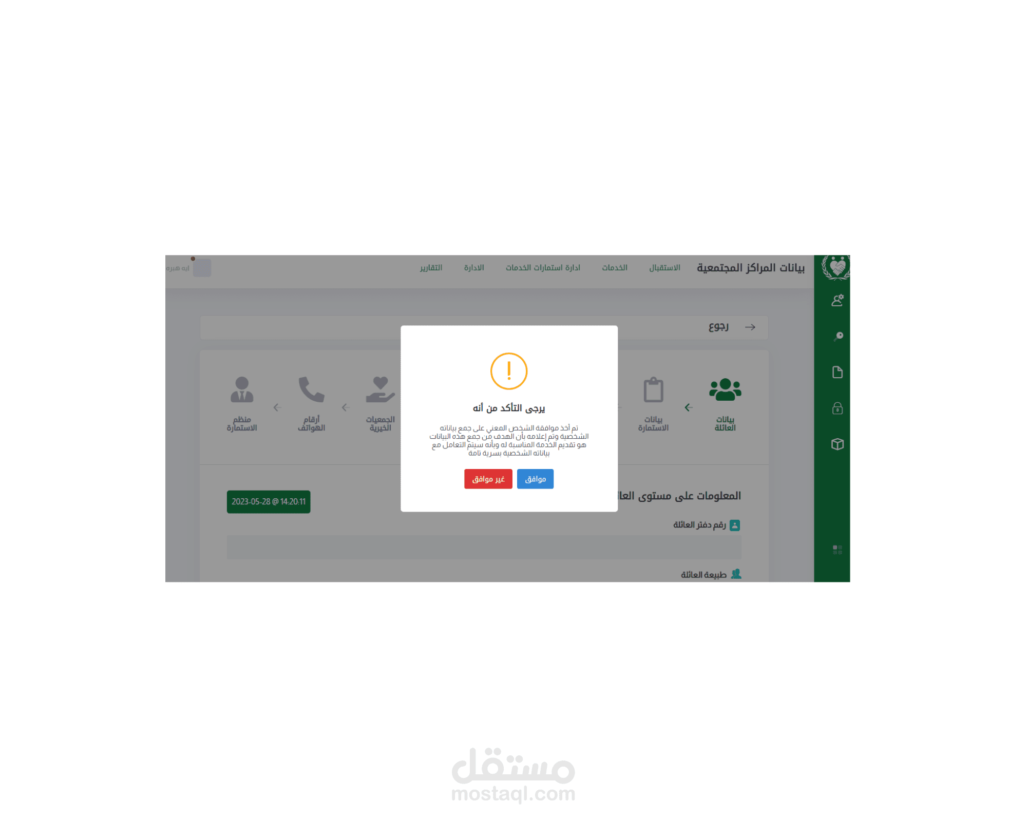 جمع معلومات الأفراد المستحقين بعد الحصول على موافقتهم، بما في ذلك المعلومات الشخصية، والحالة العائلية، وحالة السكن. التعليم، أفراد الأسرة، نقاط الضعف، معلومات الاتصال..