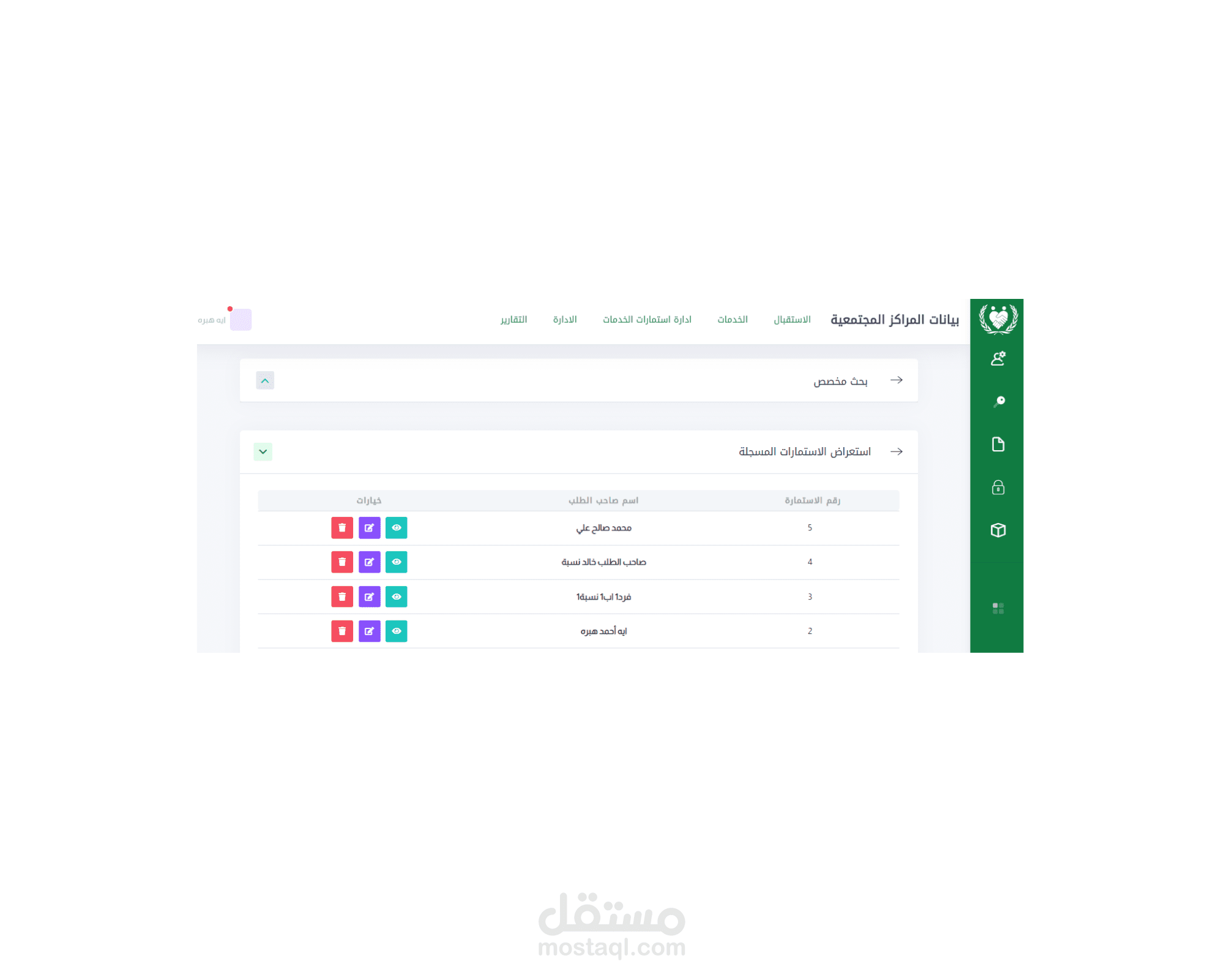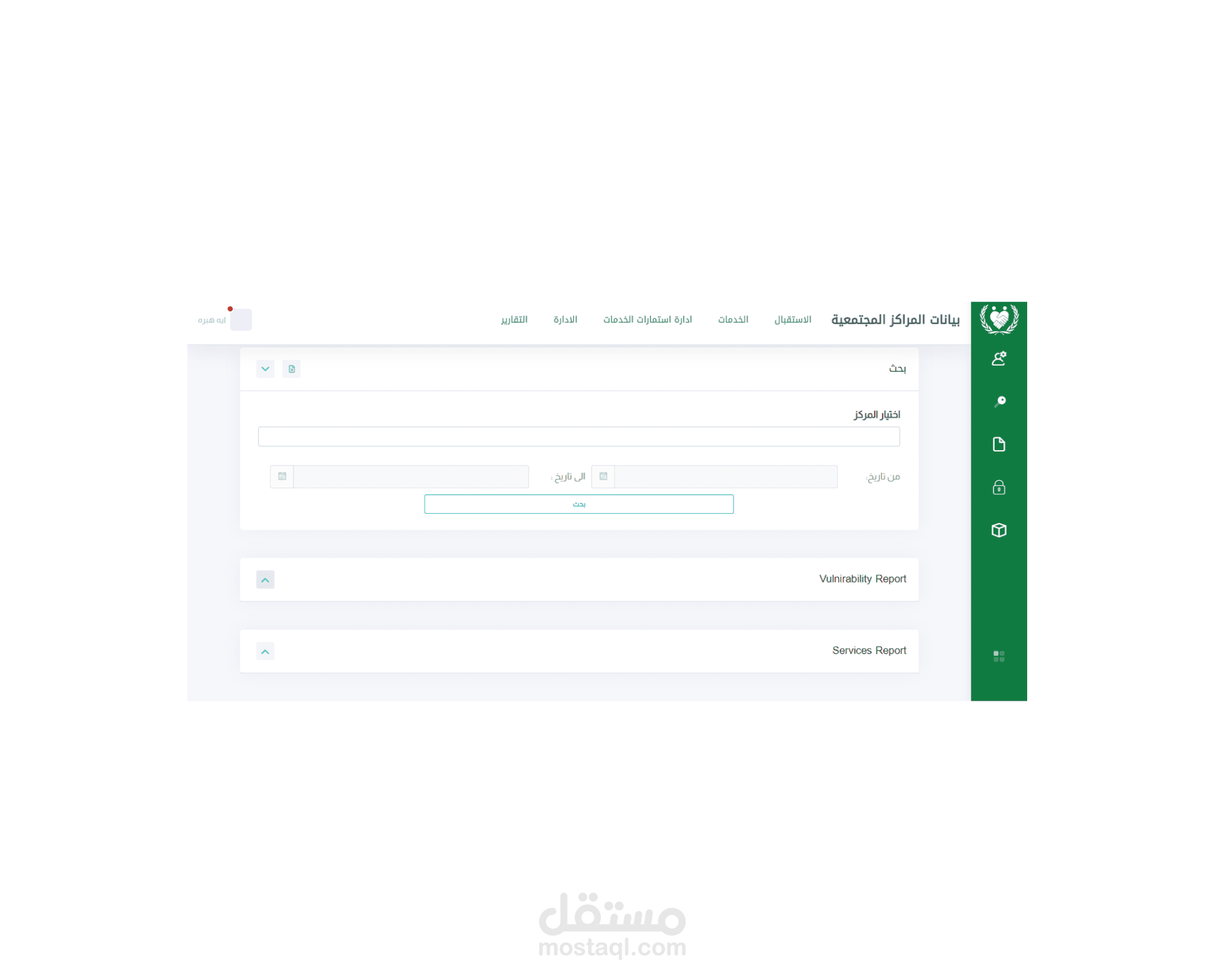إصدار تقارير العمل التي تتضمن تحليل كامل للنظام من خلال حصر أعداد المسجلين مع تصنيفاتهم وتصنيفهم بناء على الخدمات المتوفرة