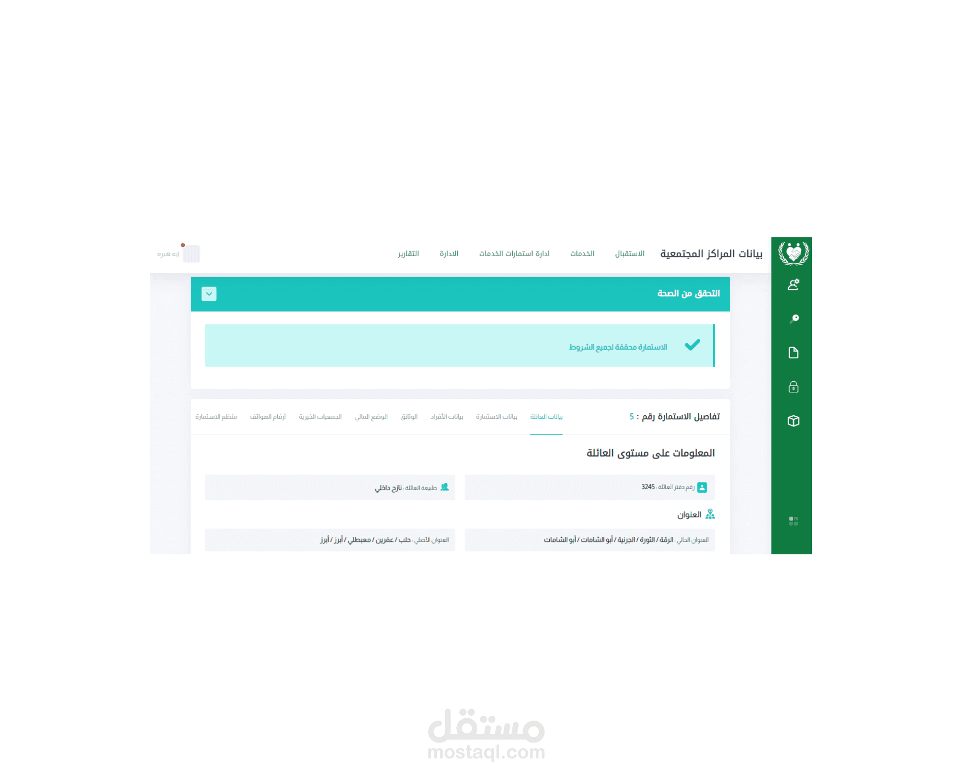 إمكانية تعديل البيانات العائلية والفردية.