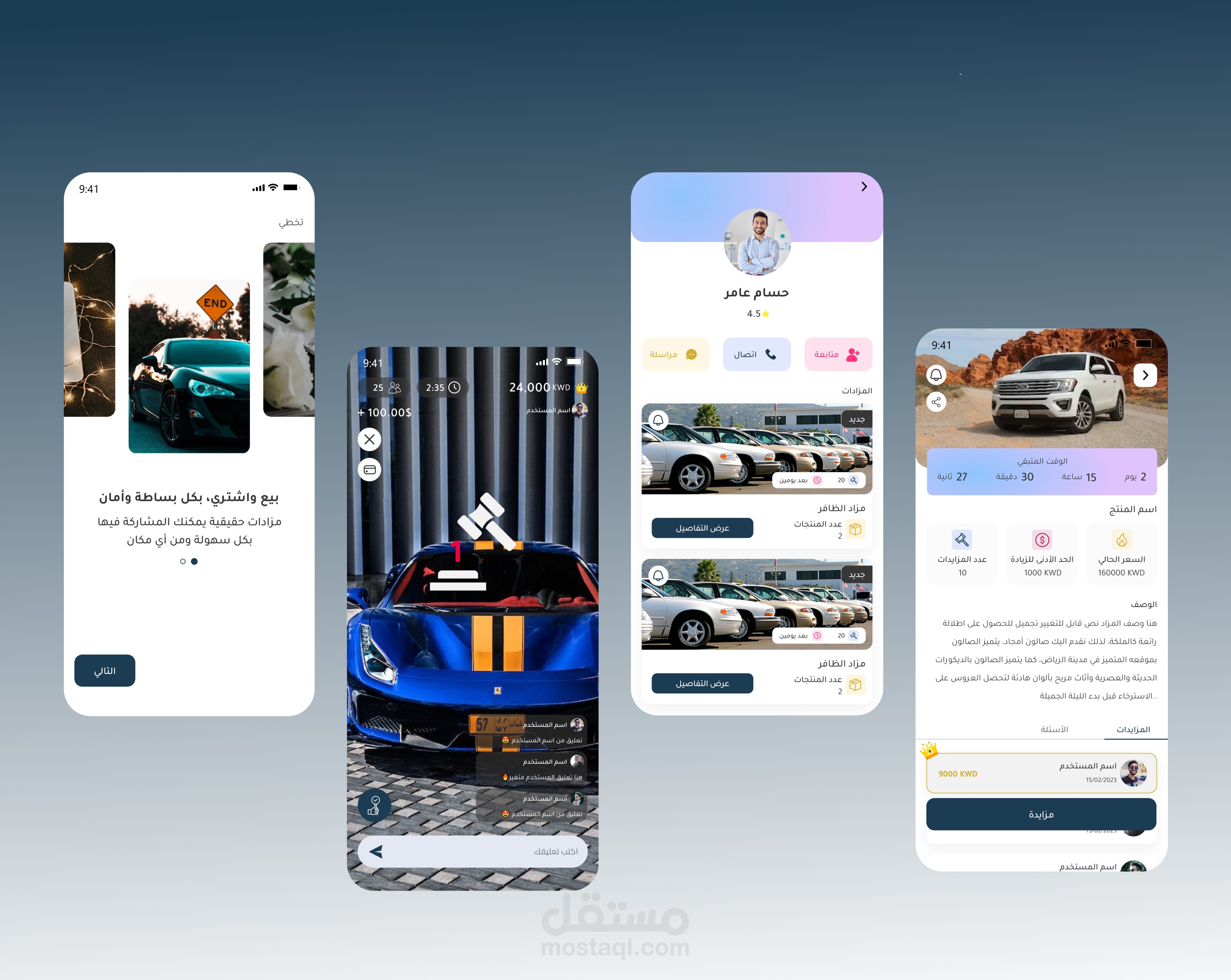 تصميم احترافي لتطبيق مزادات يشمل ( تطبيق المستخدم ، تطبيق صاحب المزاد ) :