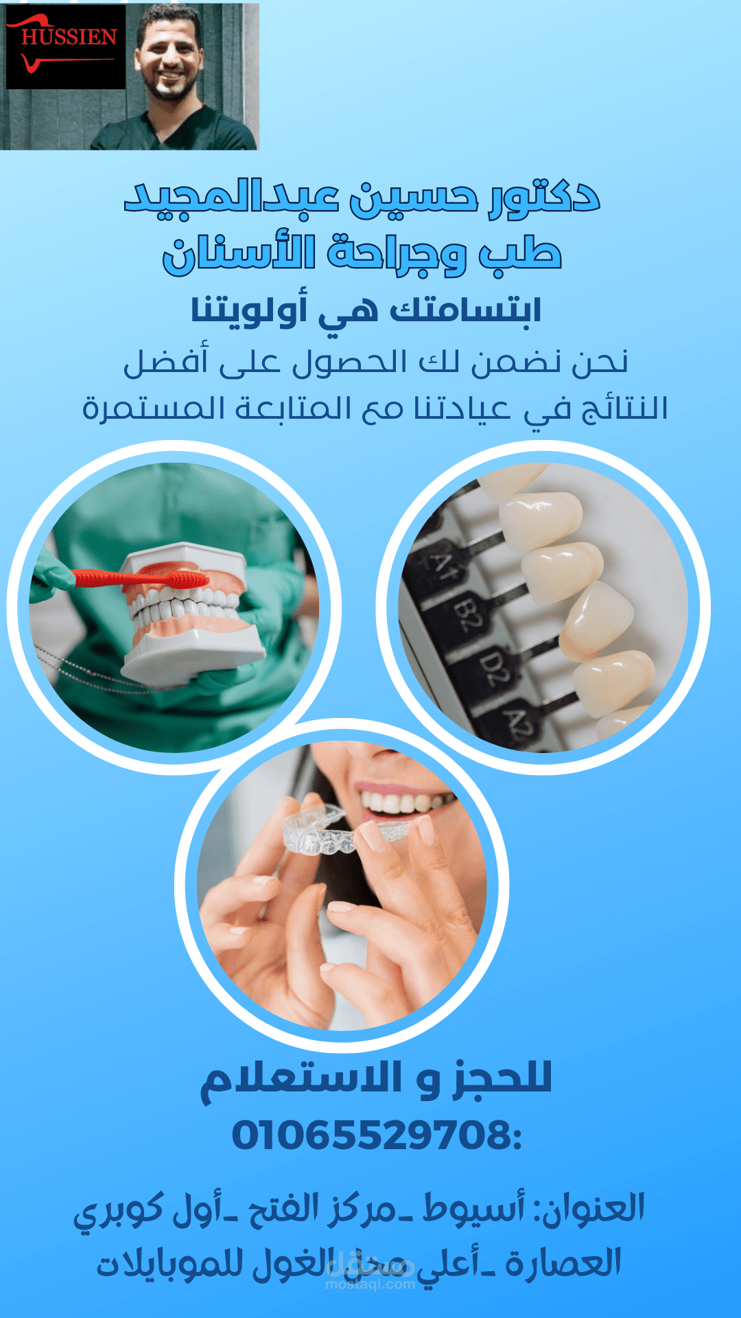 تم تنفيذ عدد من الصور وفيديو اعلاني يرافقه تعليق صوتي كاعلان لعيادة ااسنان