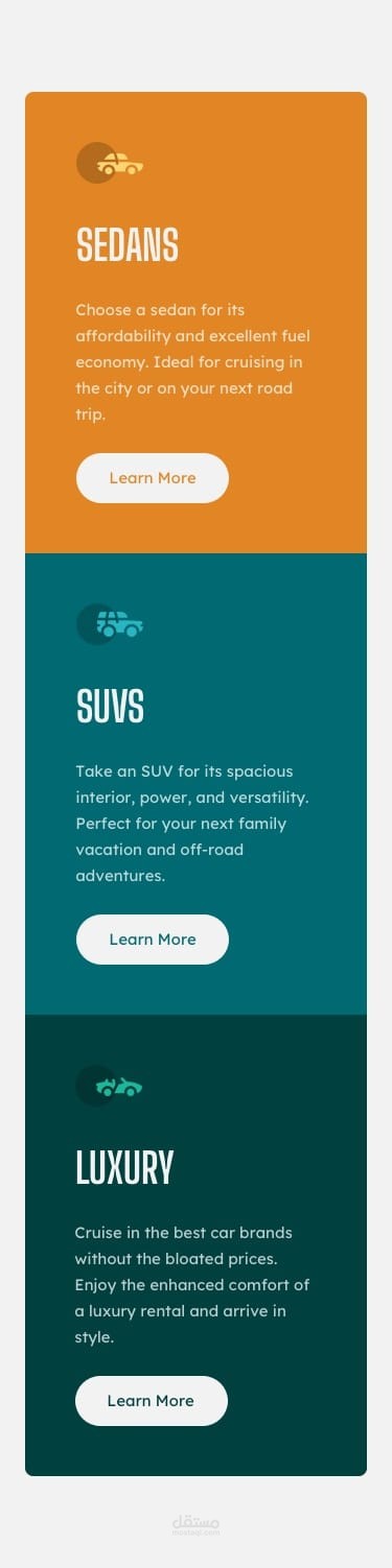 هذا تصميم جاهز ل 3-column preview card component من موقع Frontendmentor وتم تحويله لصفحة ويب باستخدام HTML - CSS - SCSS وتم عمله متجاوب مع اجهزة الهاتف.