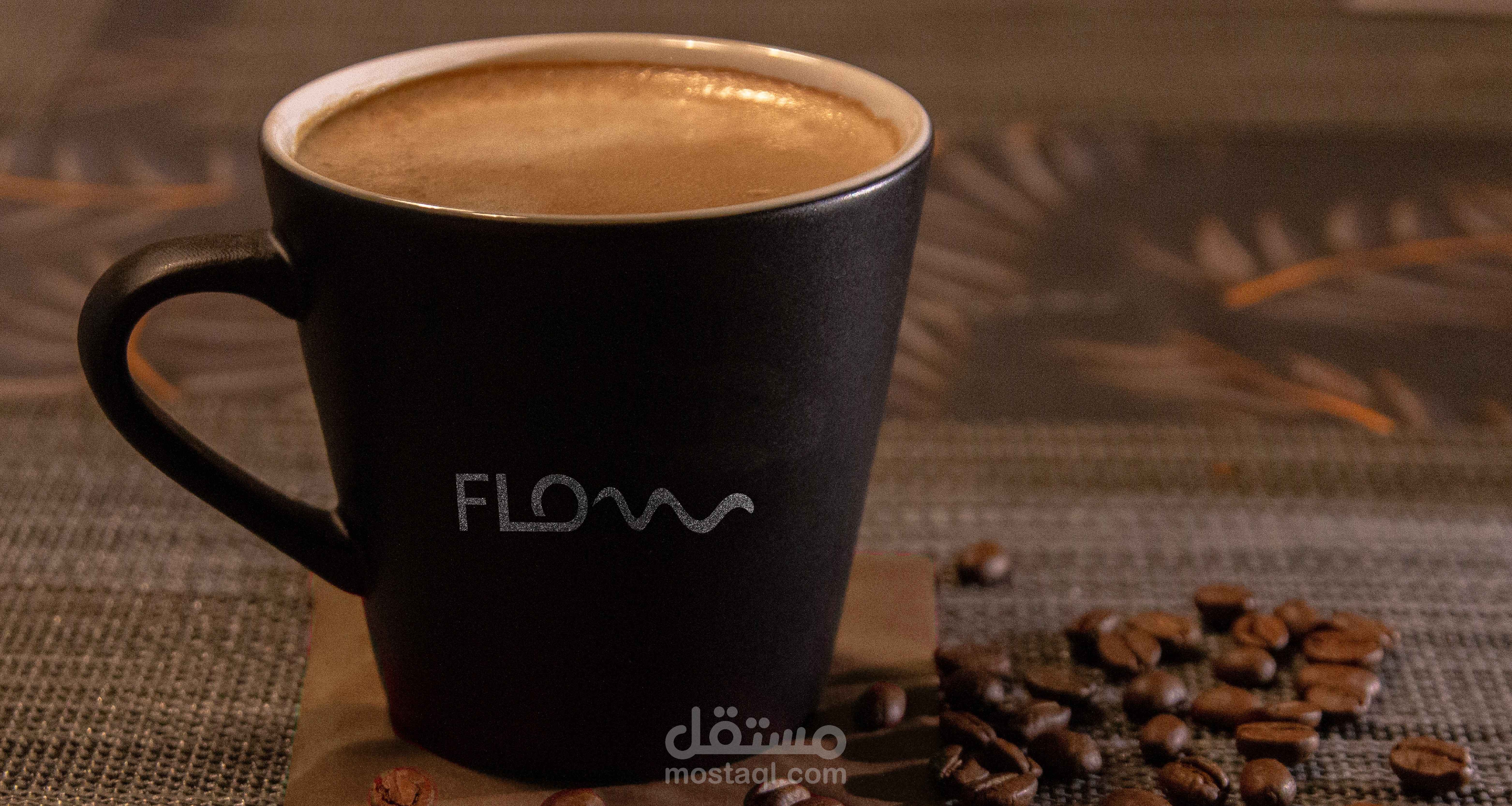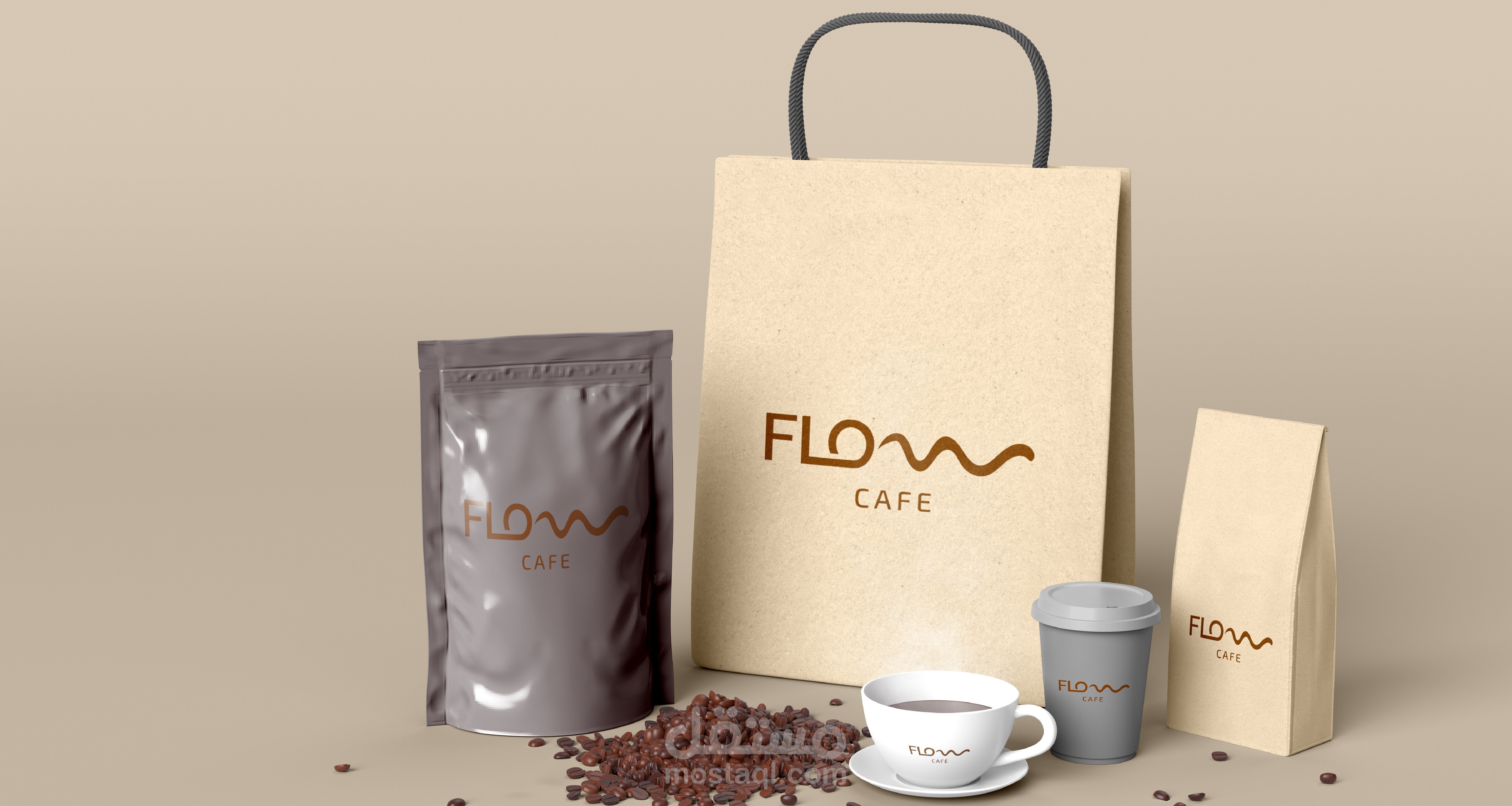 تصميم للوجو وهويه بصريه لكافيه فلو ( FLOW CAFE ) بالسعوديه