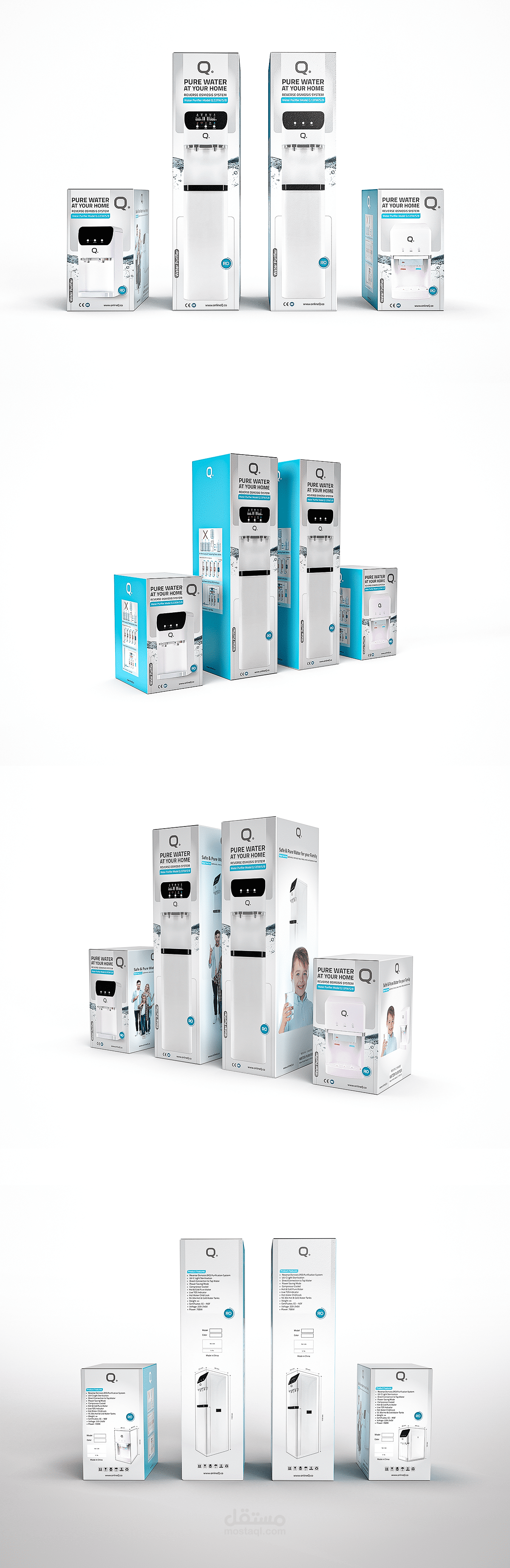 تصاميم الكارتون الخارجي لعدد 4 منتجات مبرد ومنقى مياه
