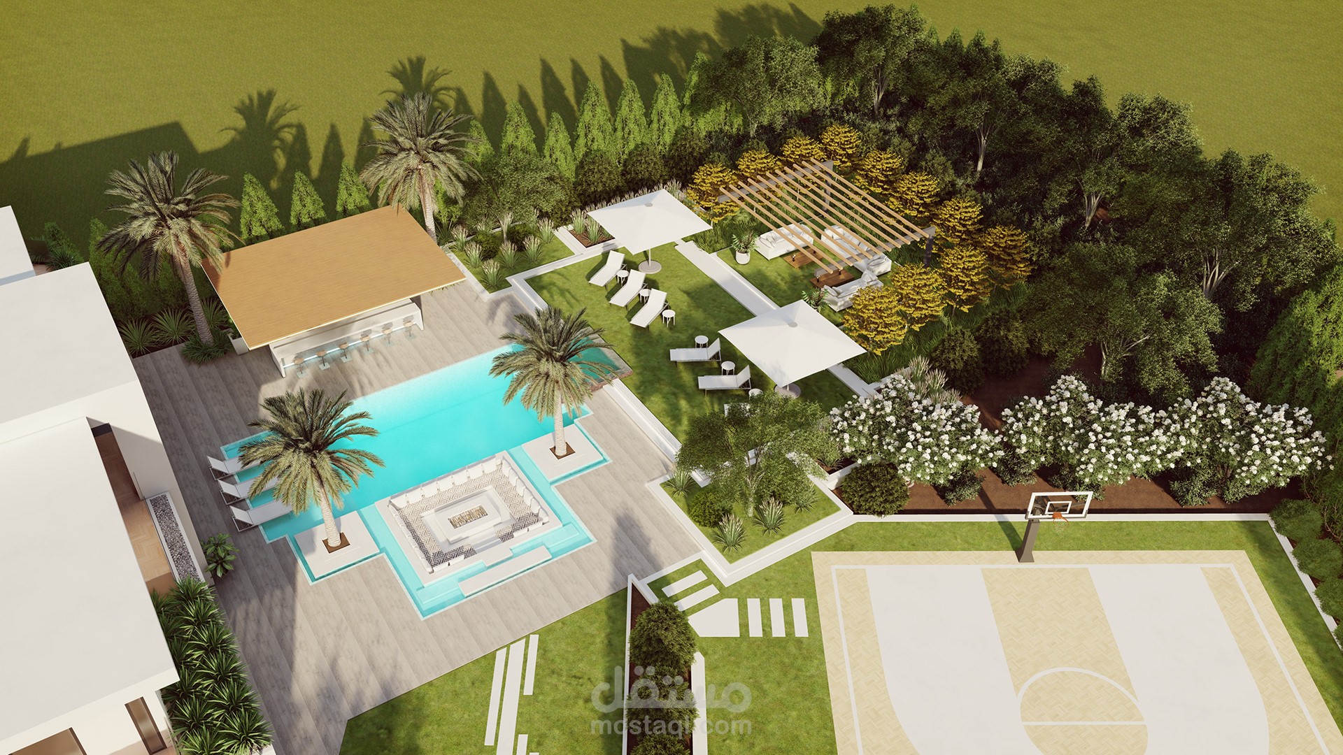 المشروع تم تقديمه في مسابقة معمارية في اللاندسكيب بموقع Arcbazar.com وحصلت علي المركز الاول بفضل الله