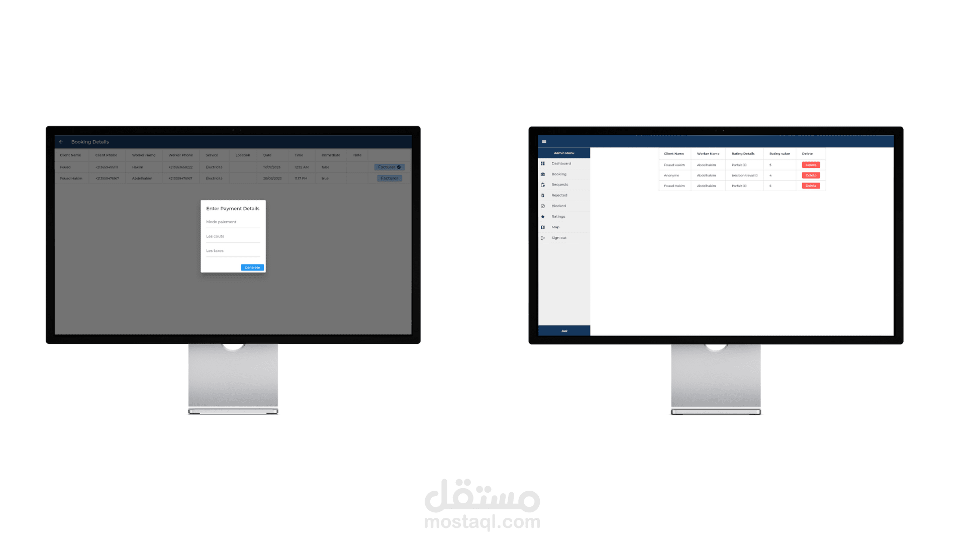 Ratings and Reviews: View worker ratings and client feedback to ensure service quality.