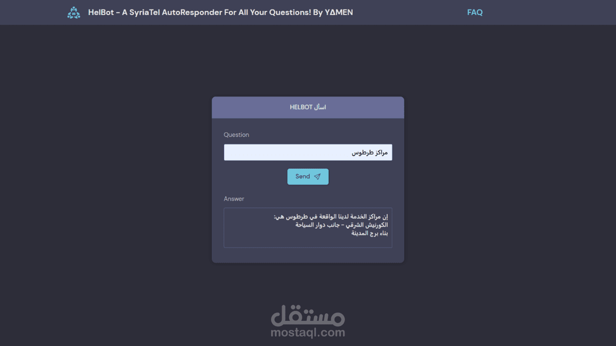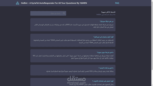 HelBot هو مجيب آلي لشركة اتصالات يقوم بالإجابة على الأسئلة التي يطرحها الزبائن ويساعدهم على حل مشاكلهم.