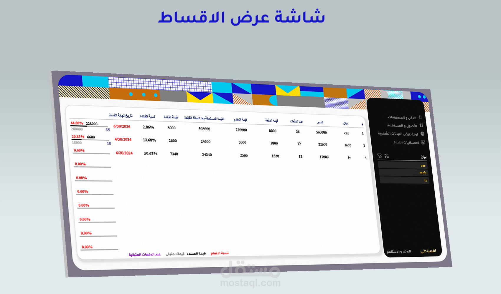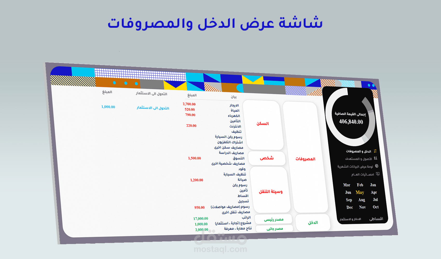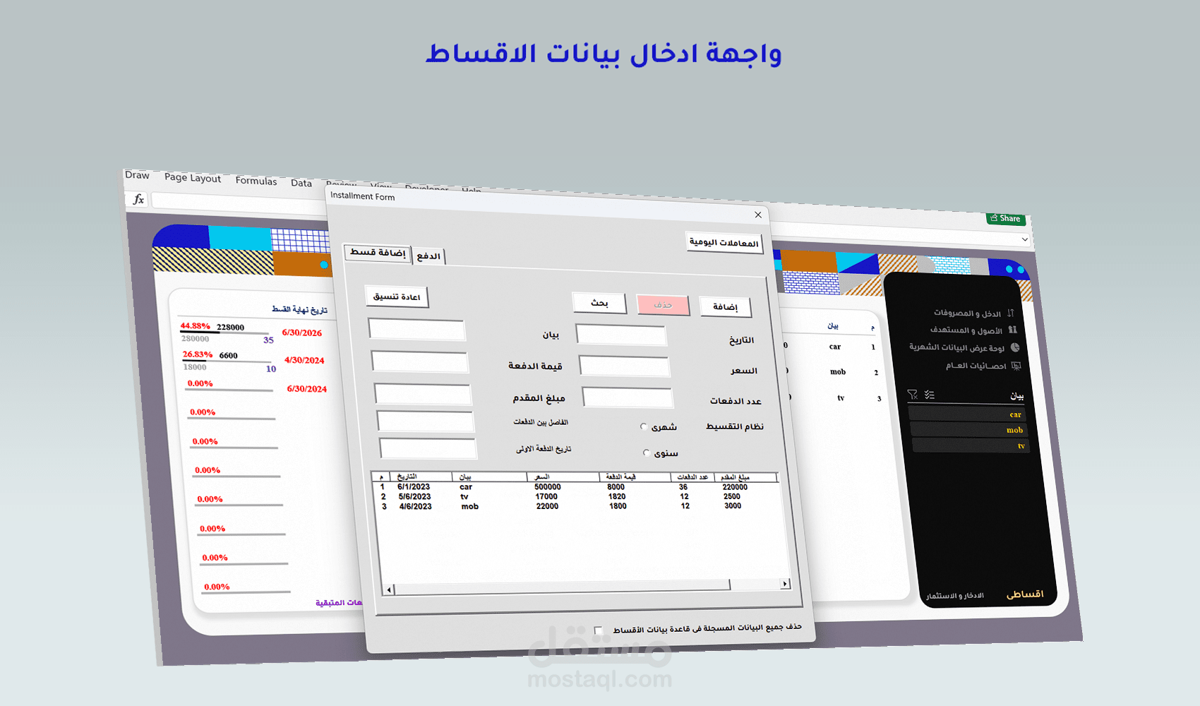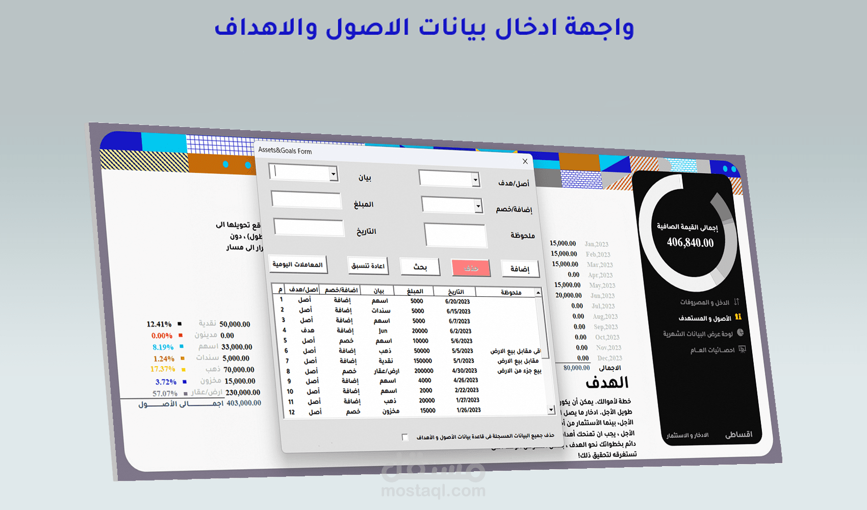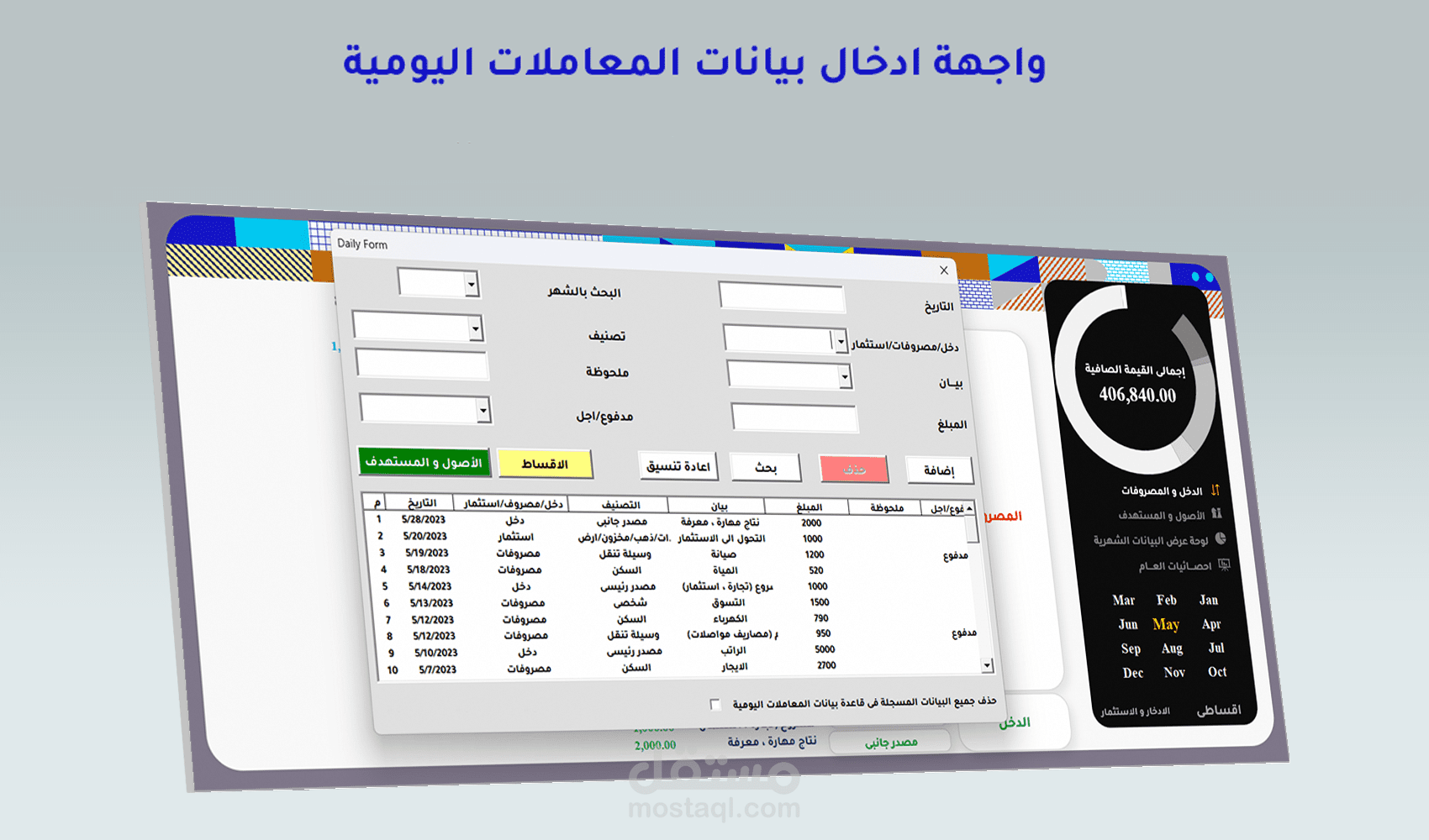 برنامج يقوم بتحليل الأداء المالى من خلال واجهات ادخال بيانات ذكية مع وجود الاضافة والحذف والتعديل والبحث عن البيانات