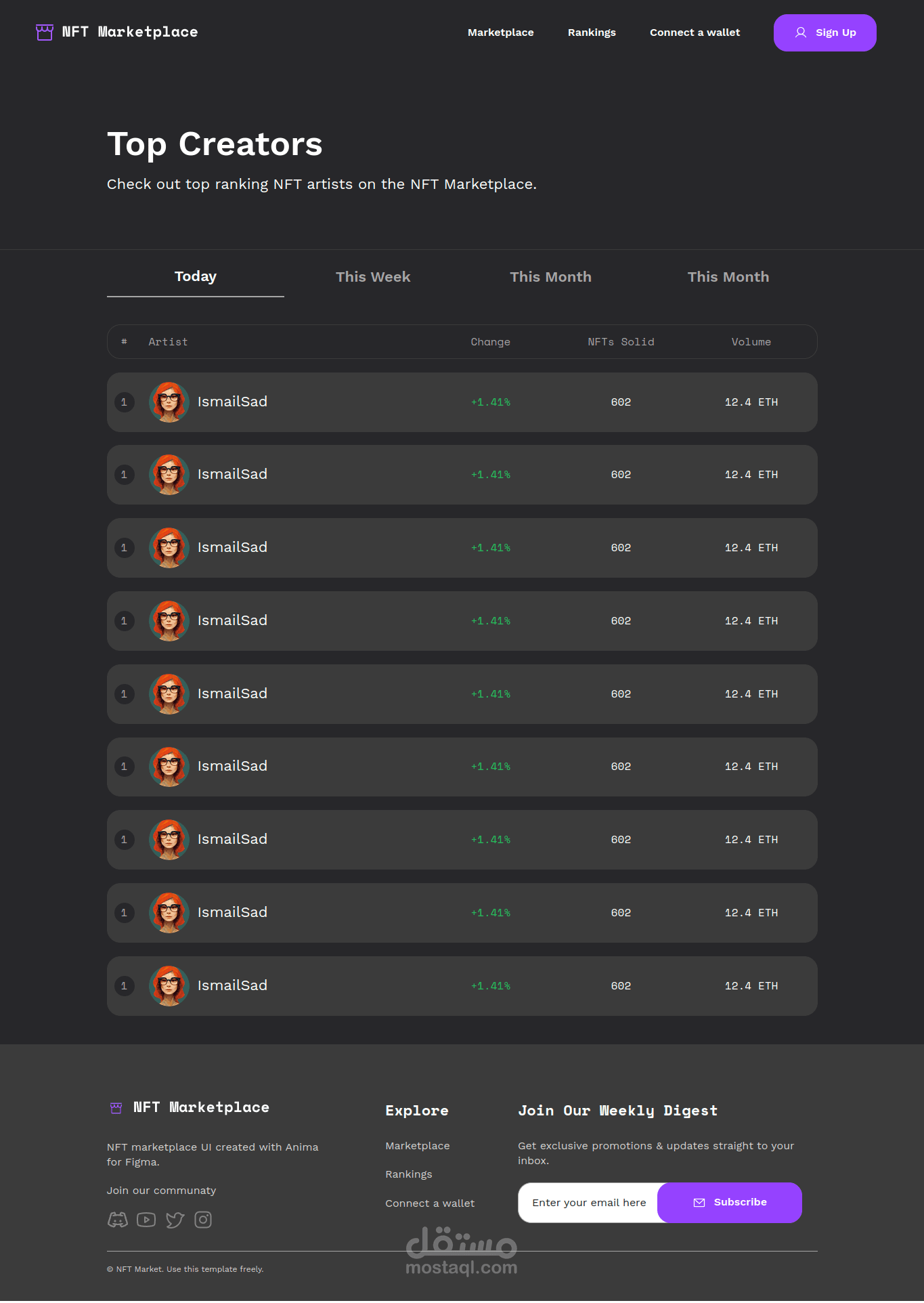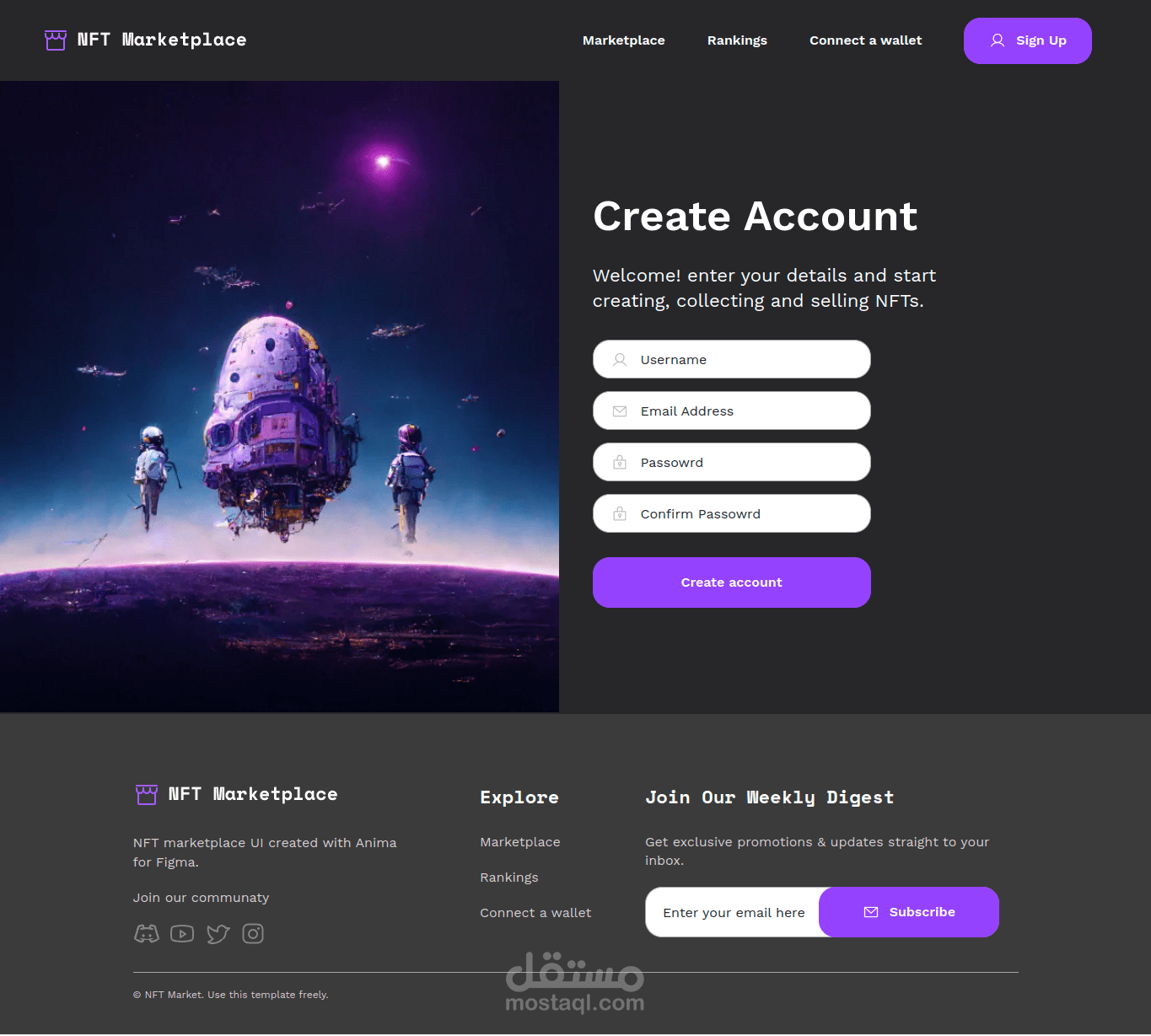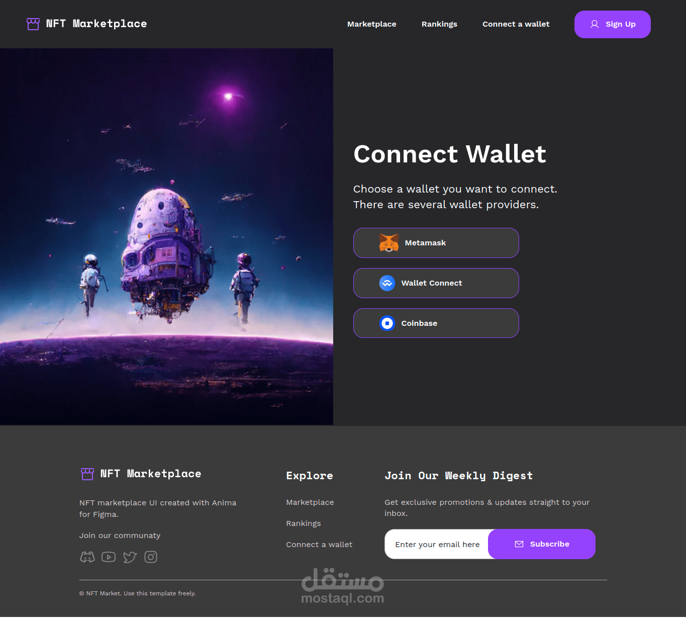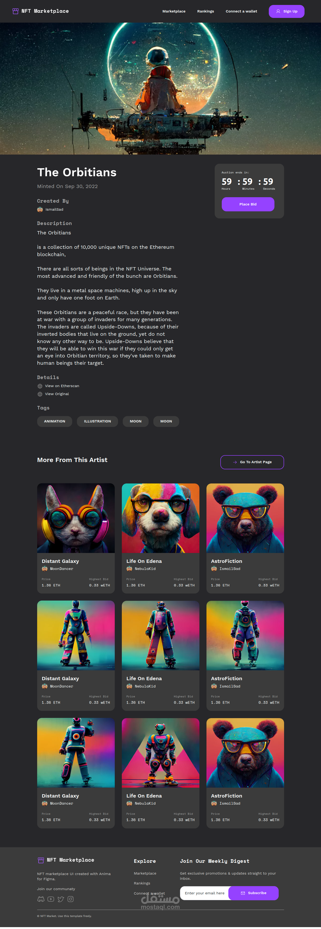 A front-end of a NFT Marketplace website, built using HTML, CSS,tailwind CSS, and JavaScript. This project was converted from figma to code for showcasing my web front end development skills.