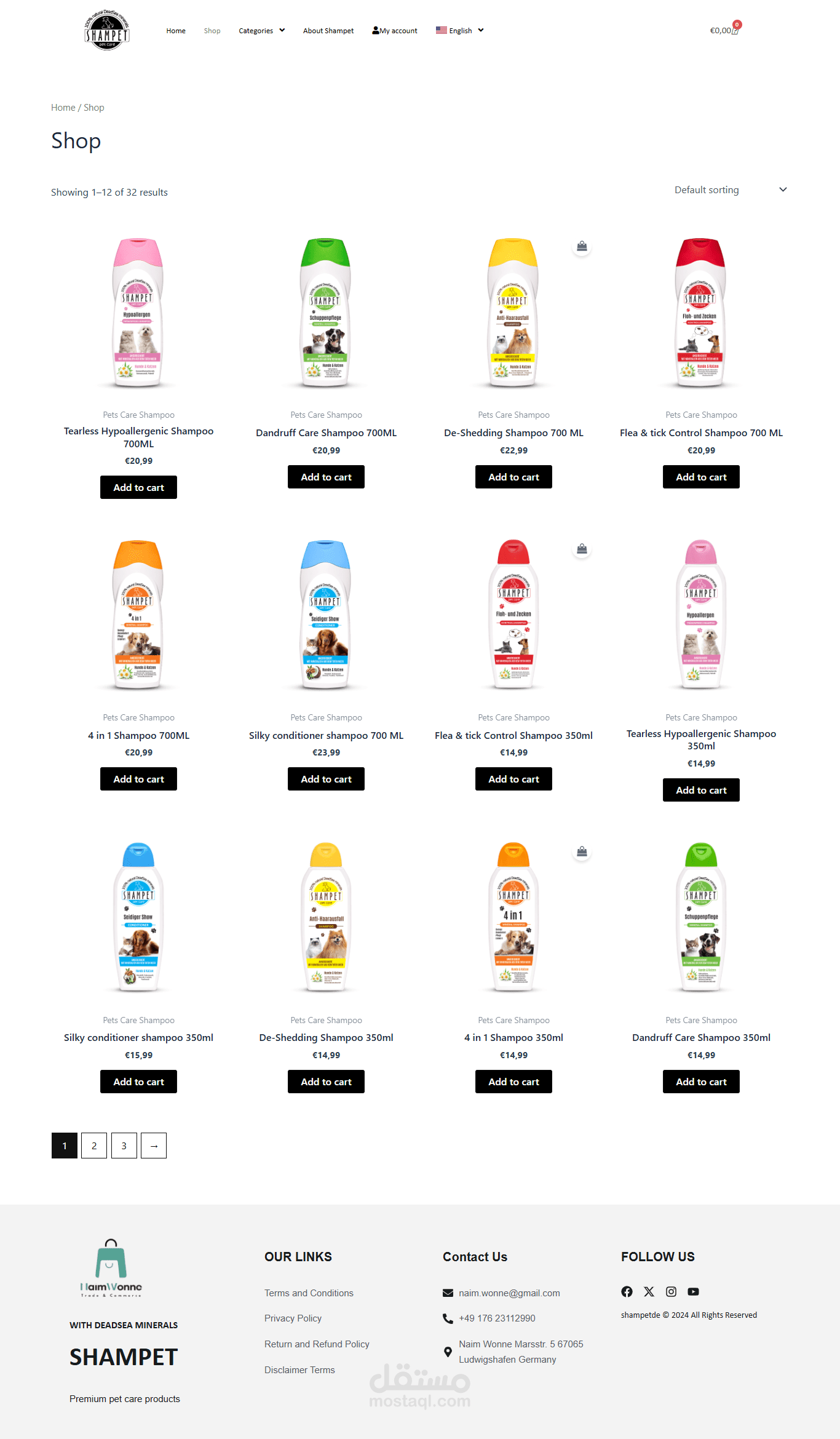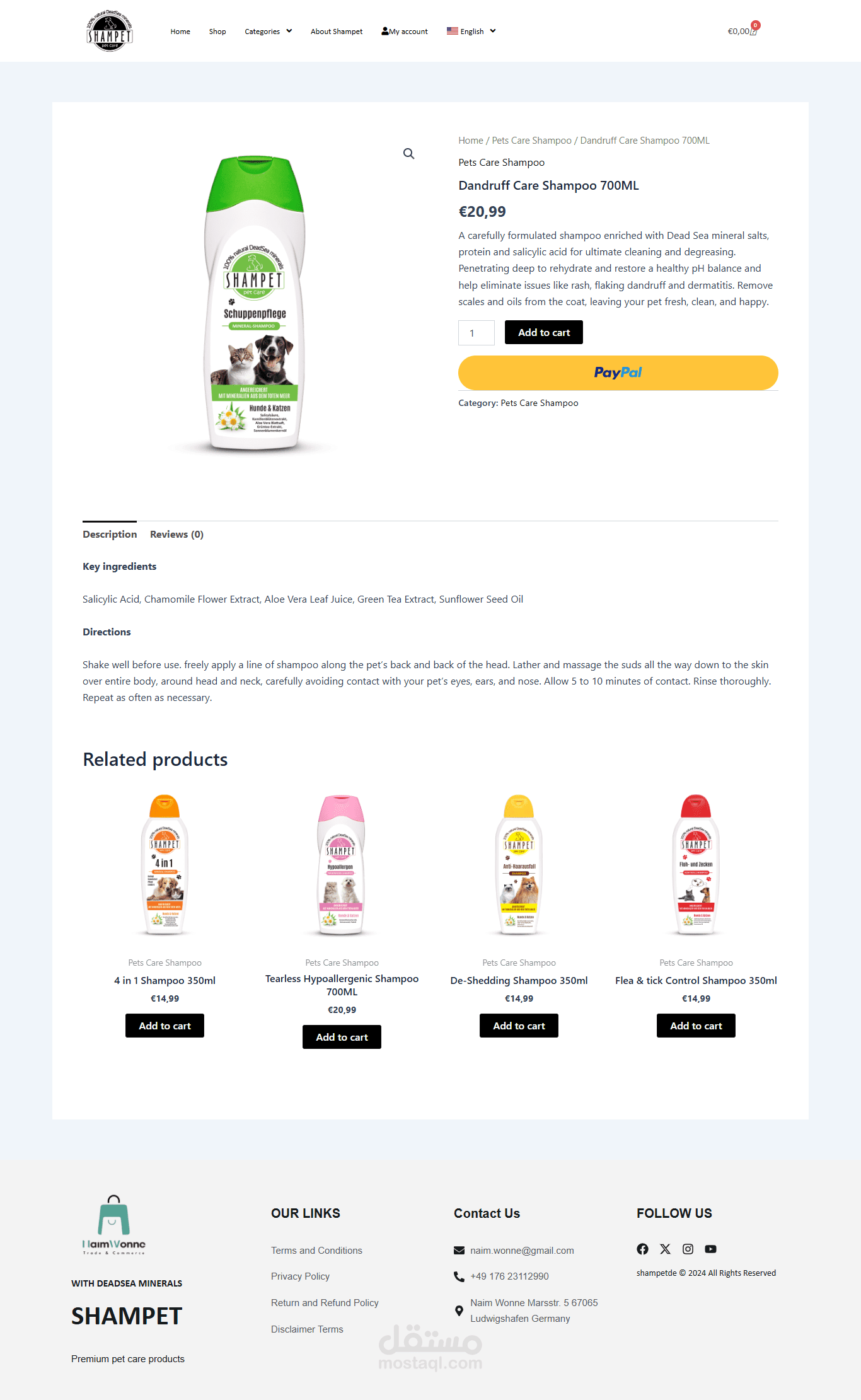 متجر الكتروني متخصص في منتجات العناية بالحيوانات الاليفة مع خاصية تعدد اللغات و بوابة دفع