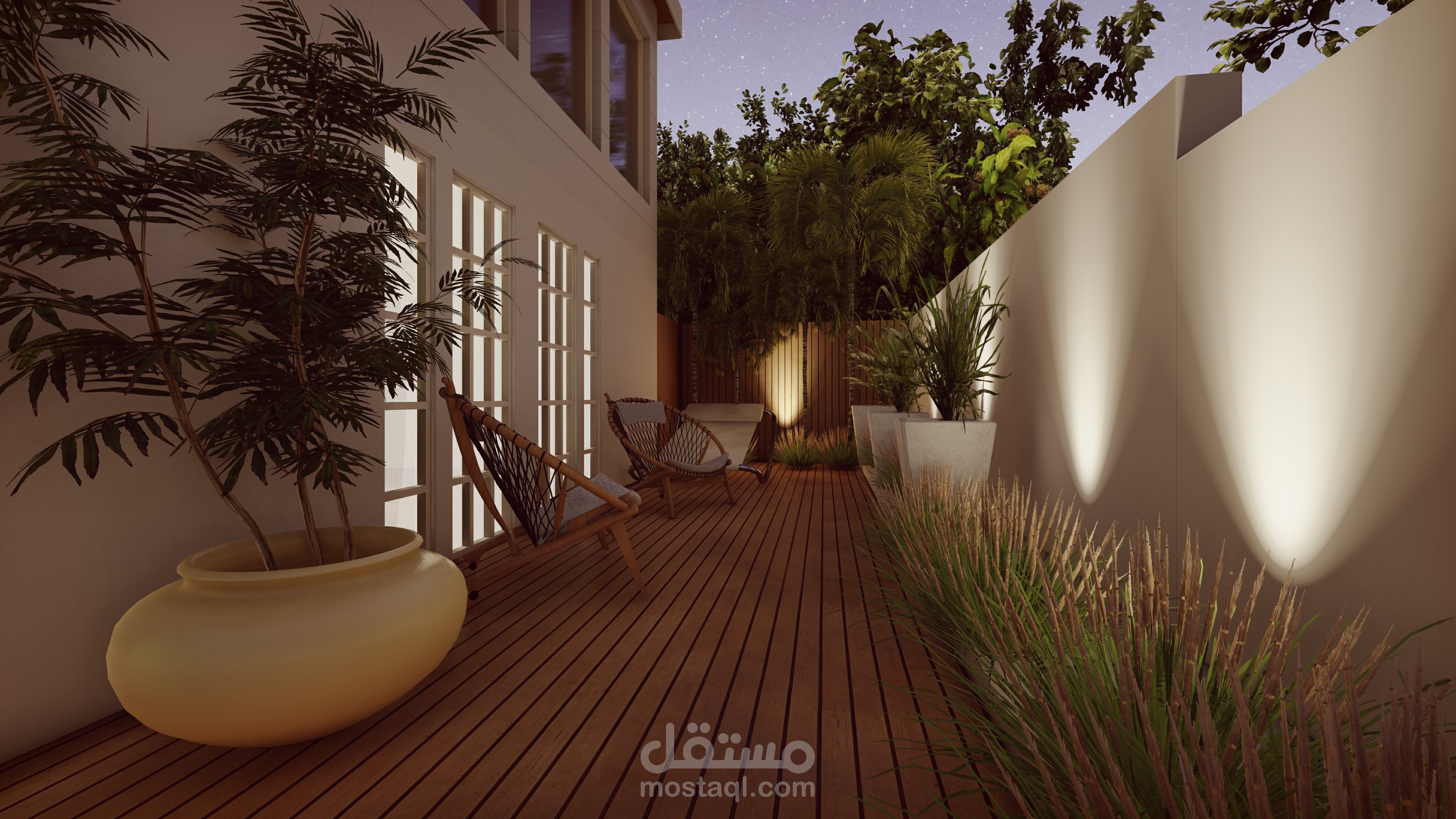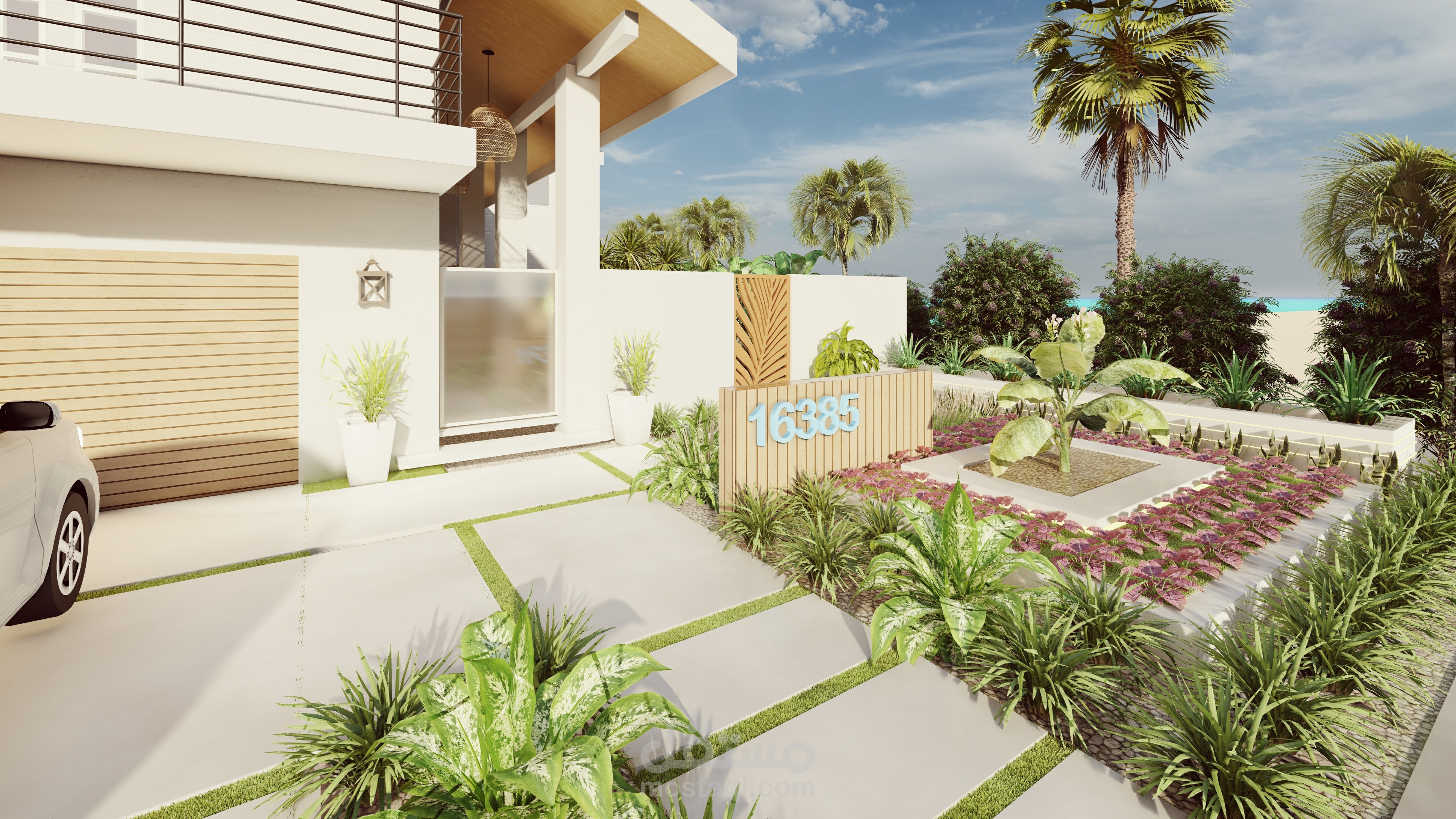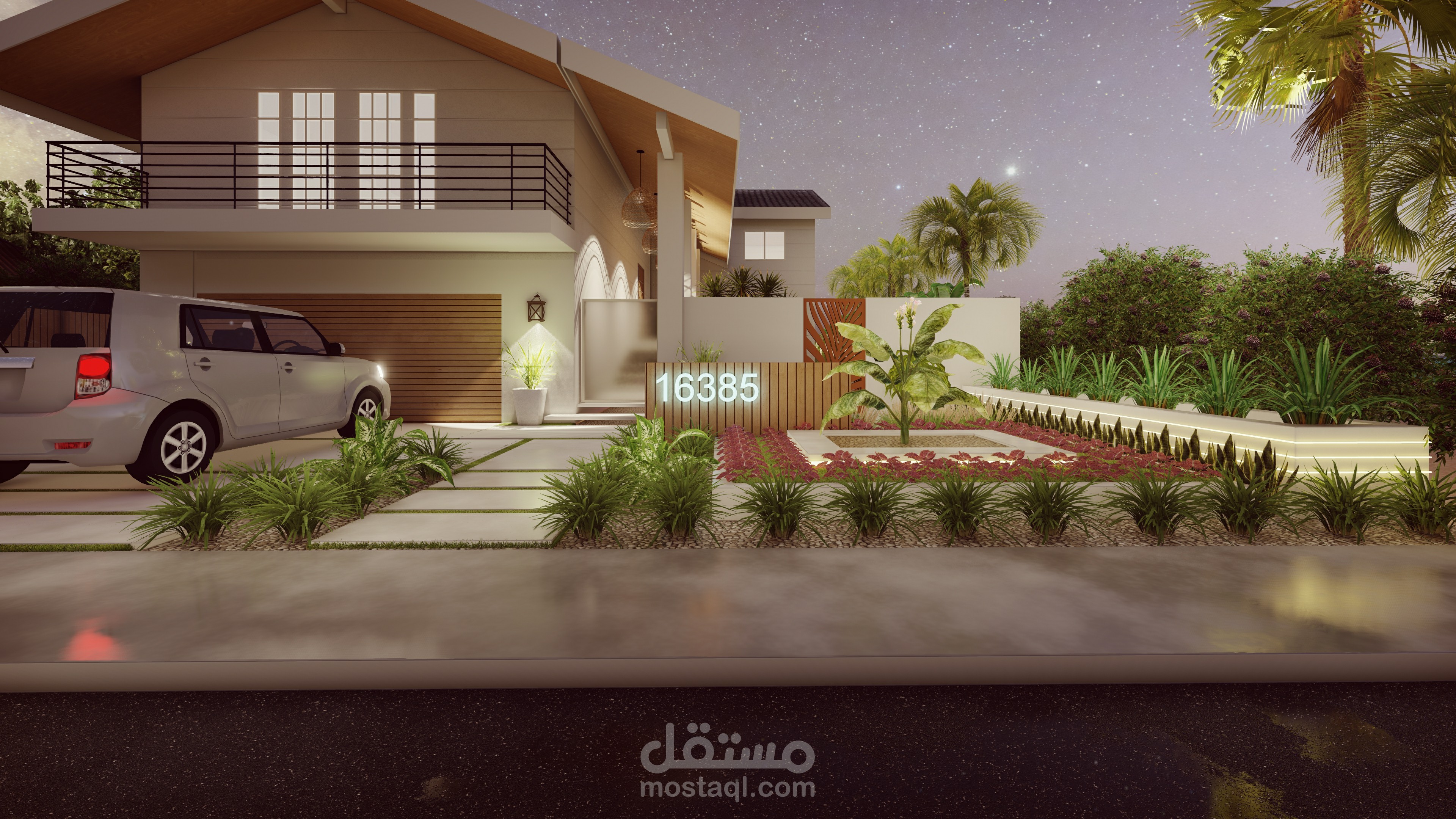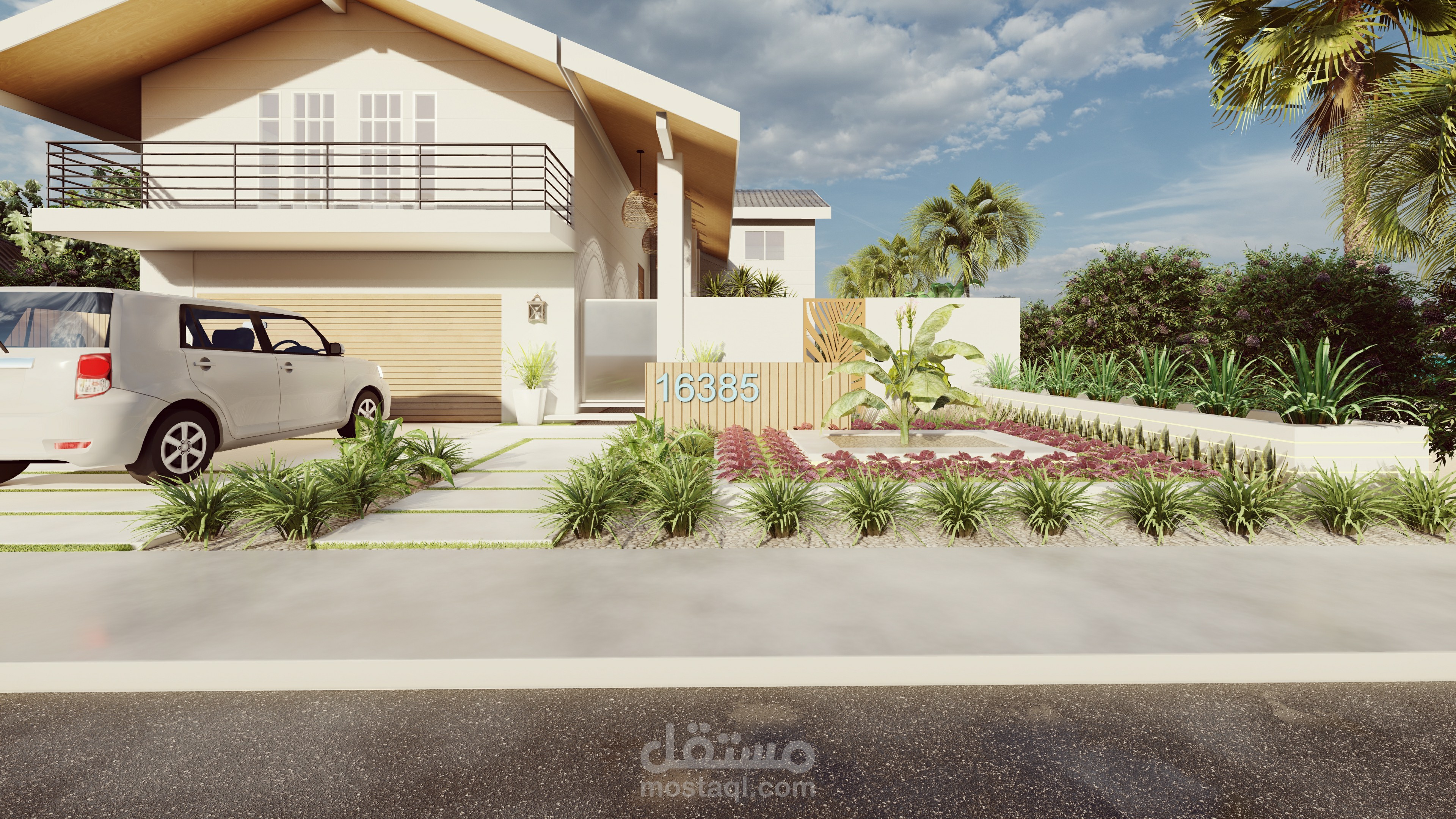 كان المطلوب تصميم لاندسكيب مناسب لمتطلبات العميل مع اجراء تعديلات علي الواجهة بحيث تكون متناسقة وغير مكلفة