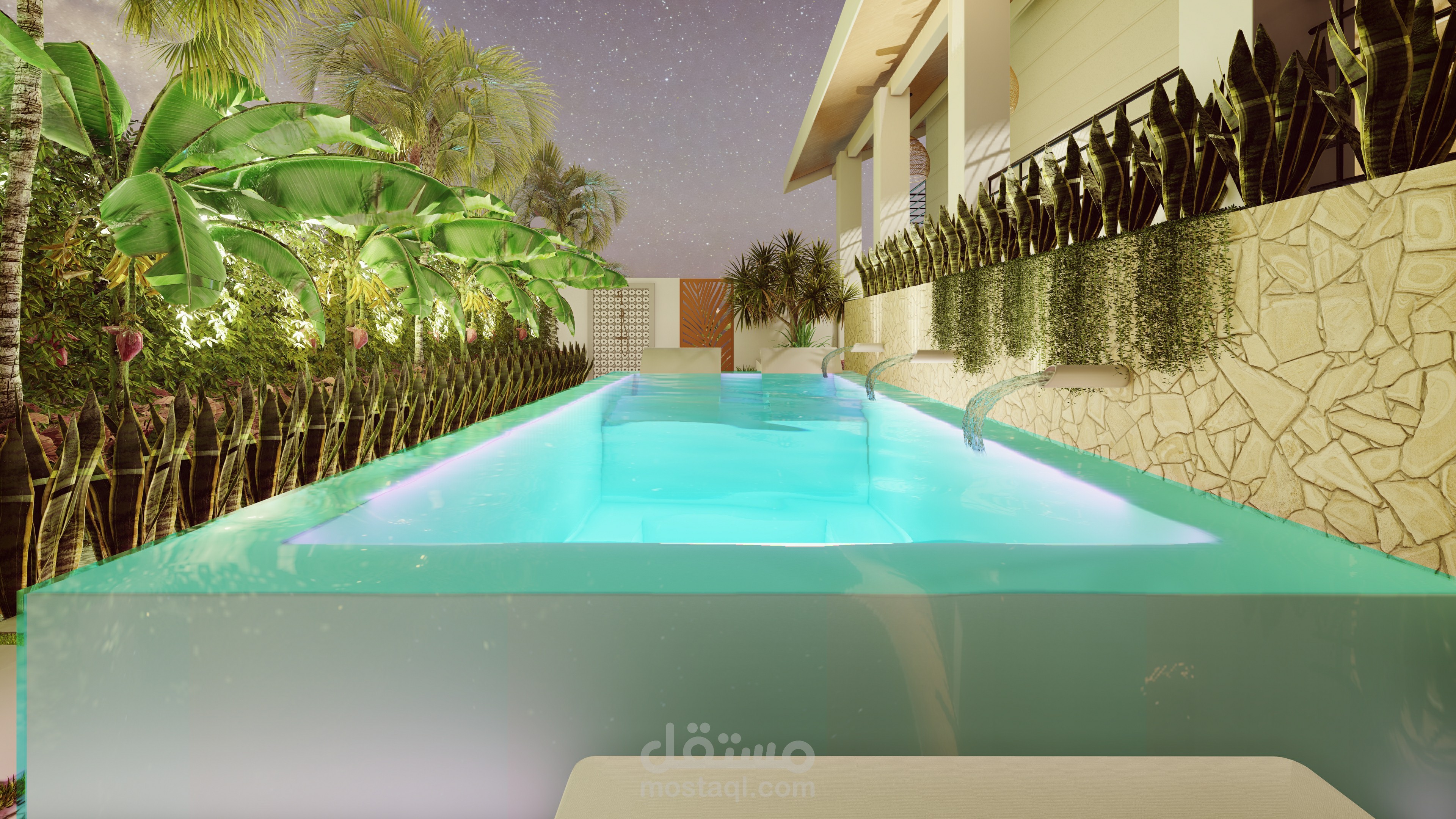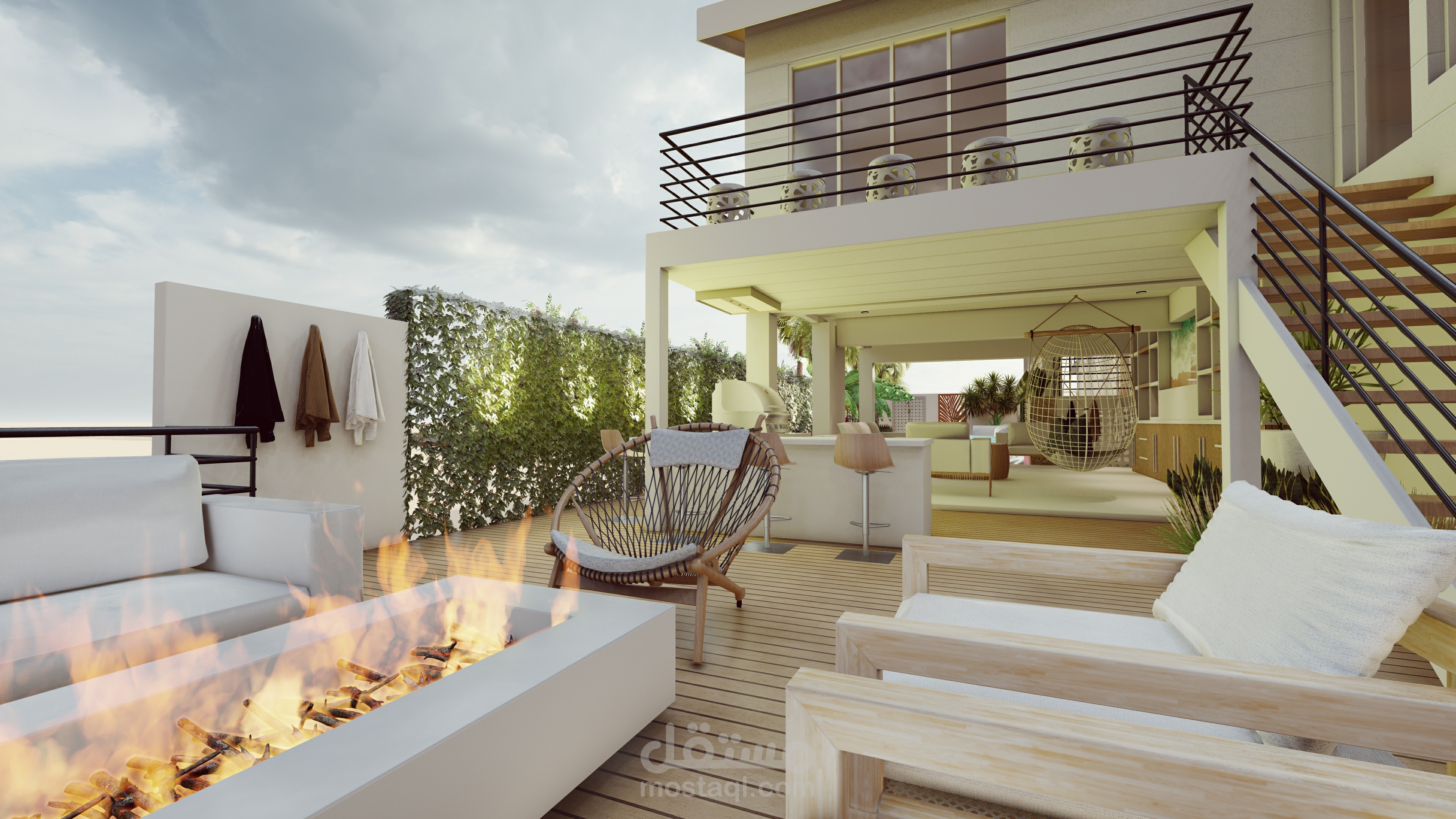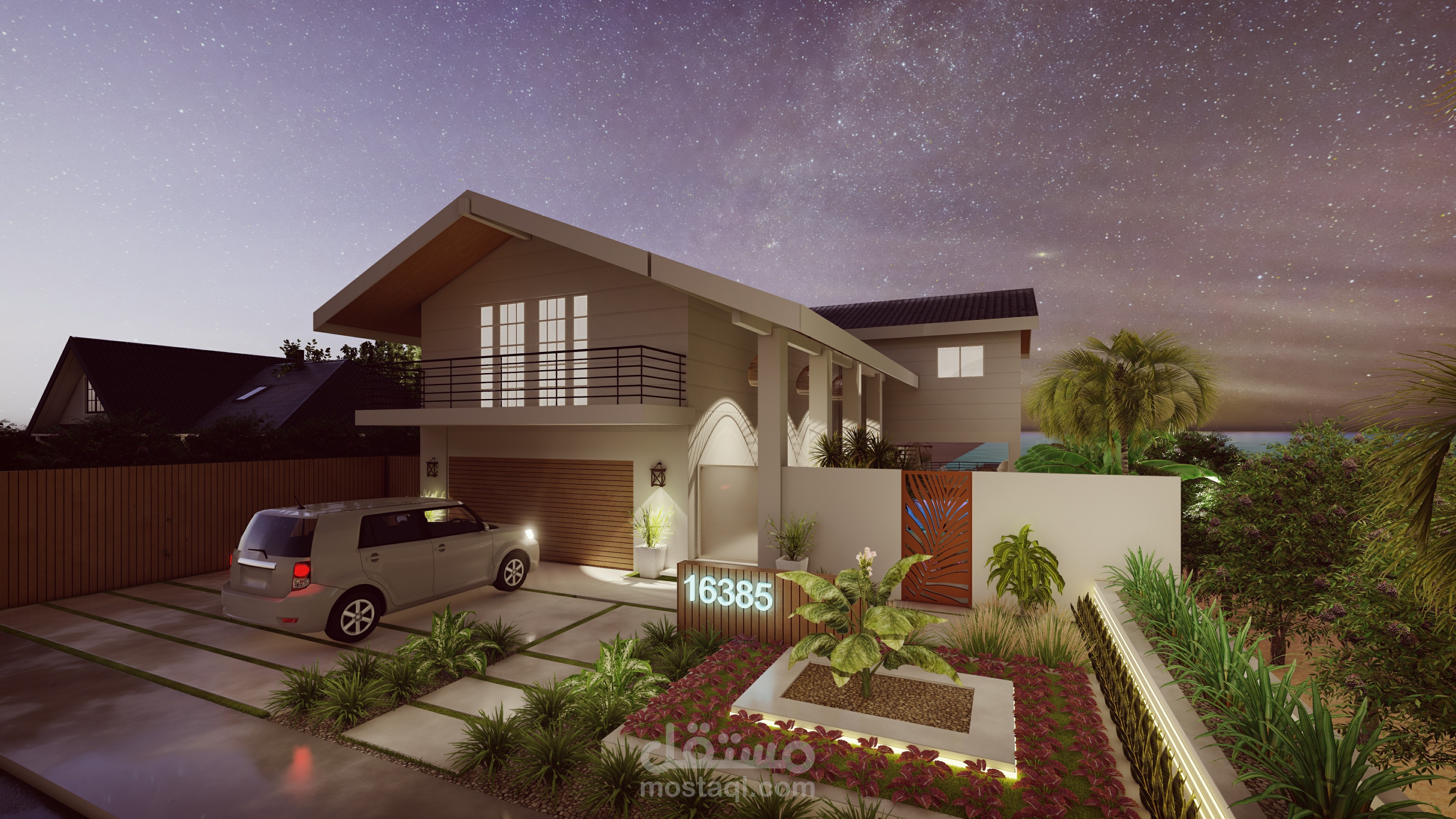 كان المطلوب تصميم لاندسكيب مناسب لمتطلبات العميل مع اجراء تعديلات علي الواجهة بحيث تكون متناسقة وغير مكلفة