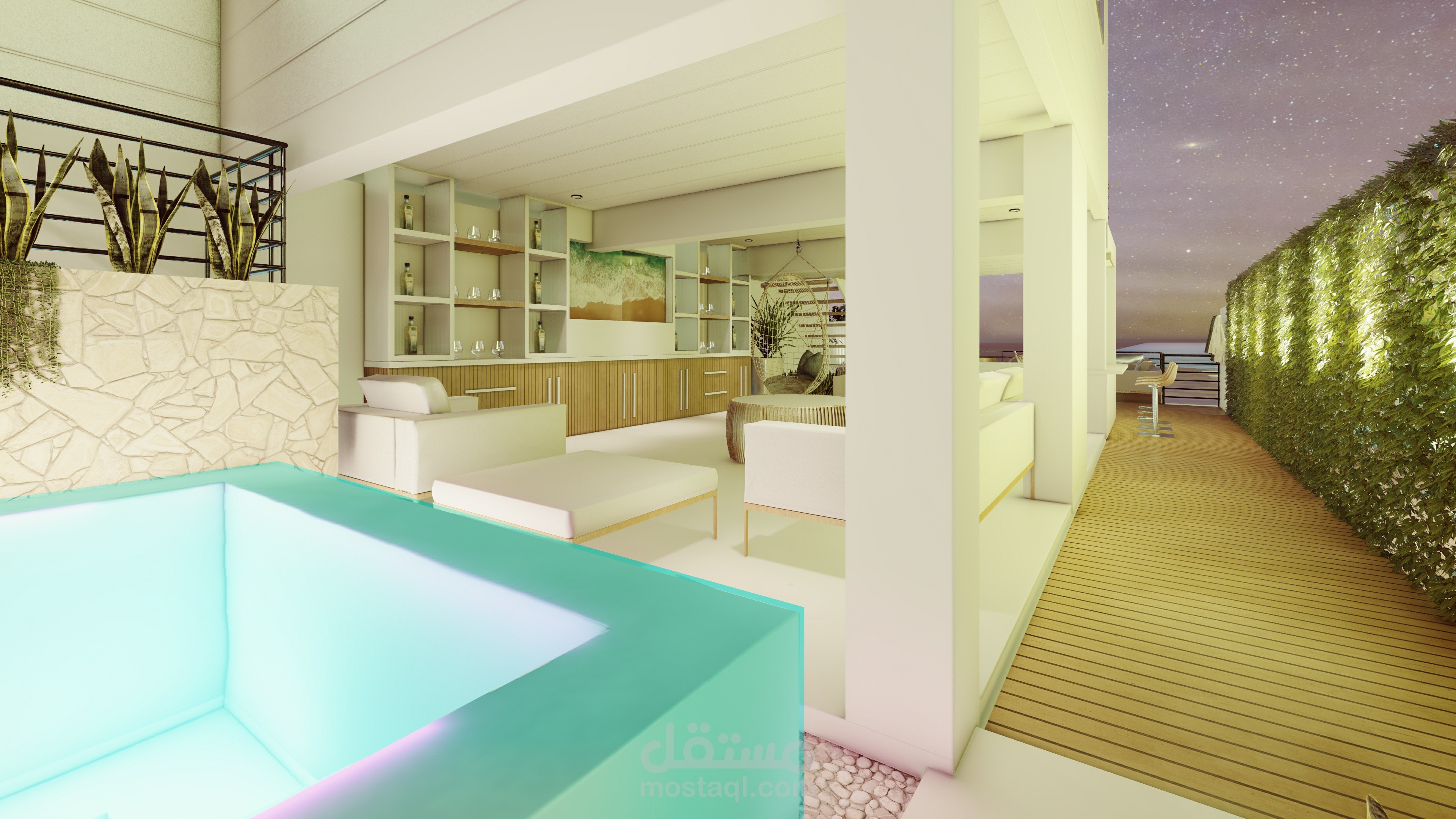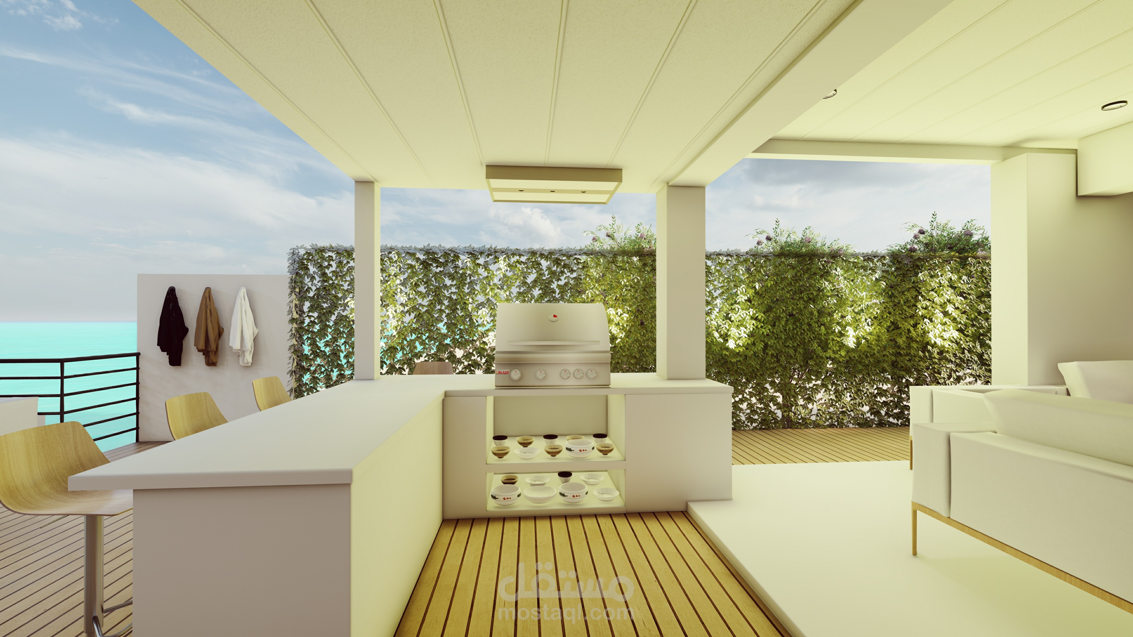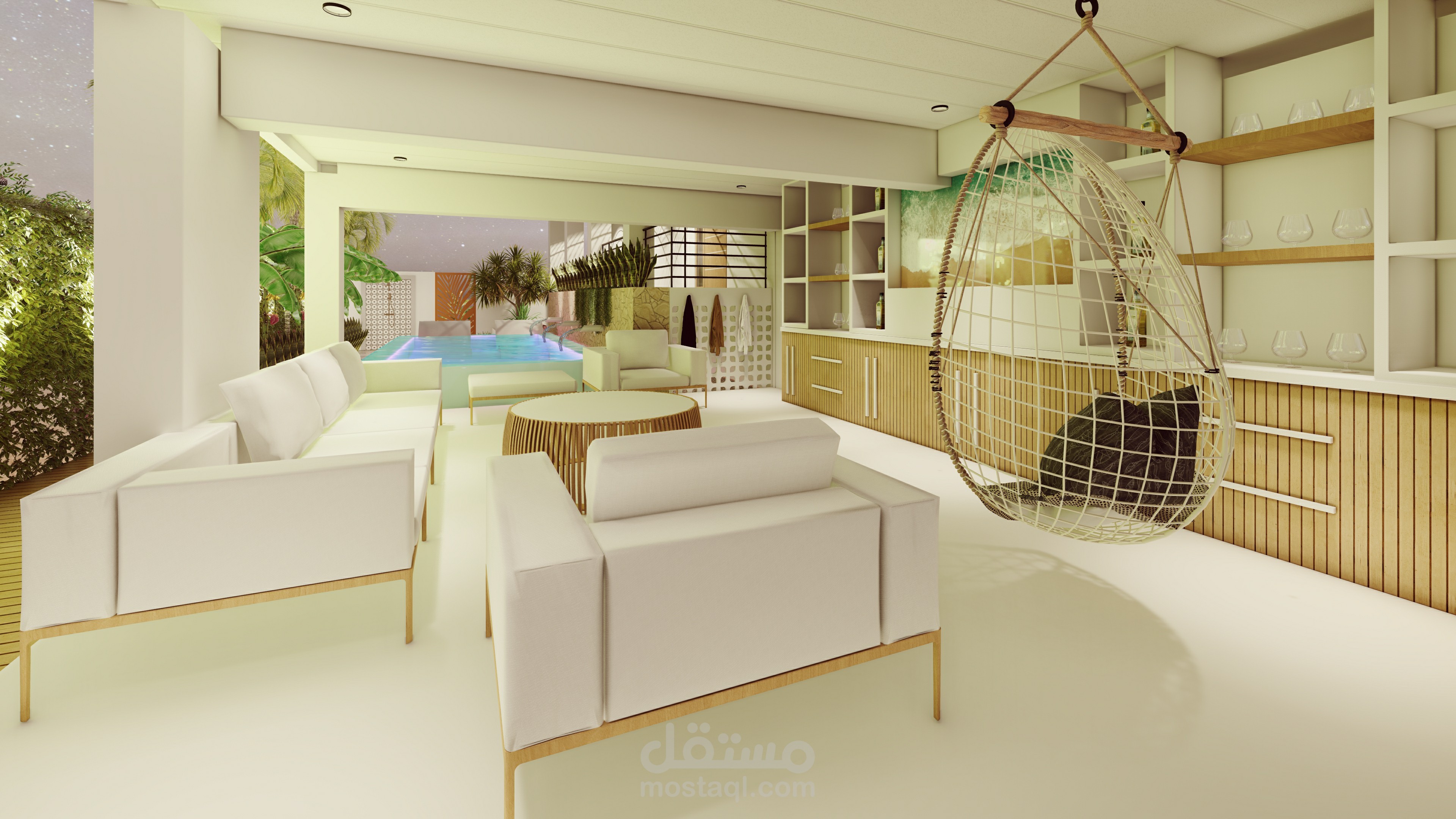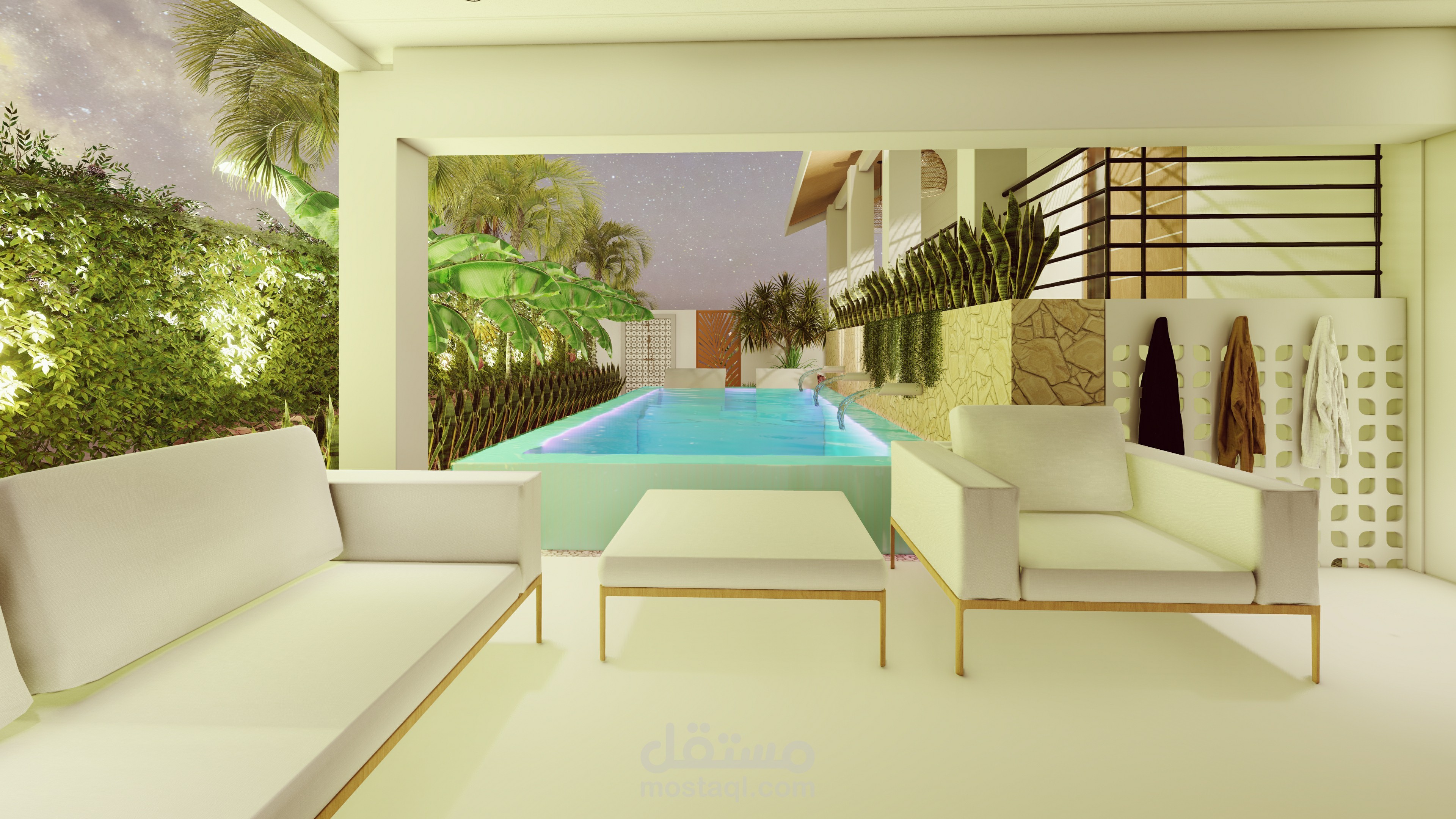 كان المطلوب تصميم لاندسكيب مناسب لمتطلبات العميل مع اجراء تعديلات علي الواجهة بحيث تكون متناسقة وغير مكلفة