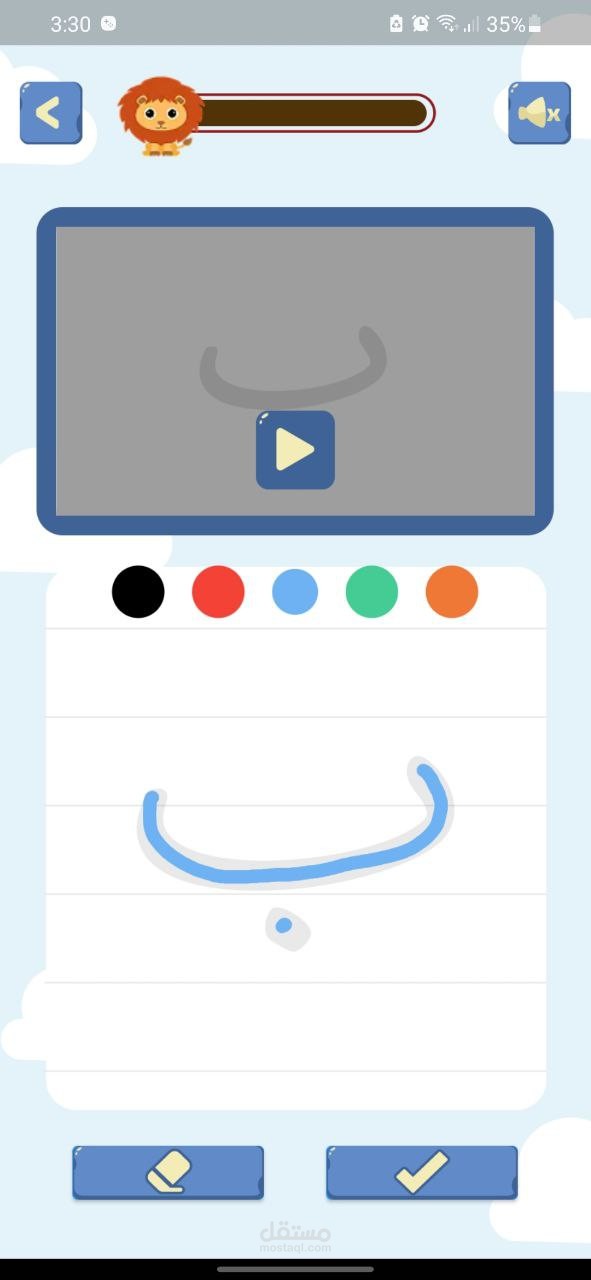 يهدف التطبيق إلى تعليم الطفل كيفية كتابة الحرف عن طريق مقطع فيديو يوضح خطوات كتابة الحرف، بالإضافة إلى مساحة يمكن للطفل الكتابة داخلها.