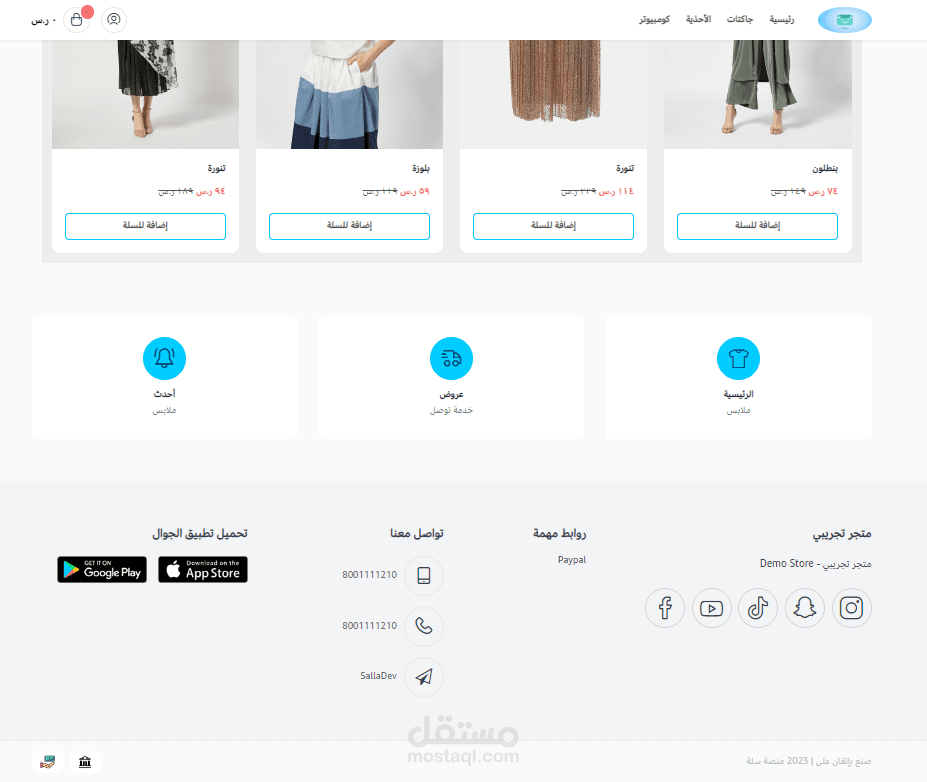 هذه مشروع هو عبارة عن تنسيق لمتجر علي منصة سلة لقد قمت بتنفيذه بالاستخدام : CSS و HTML.