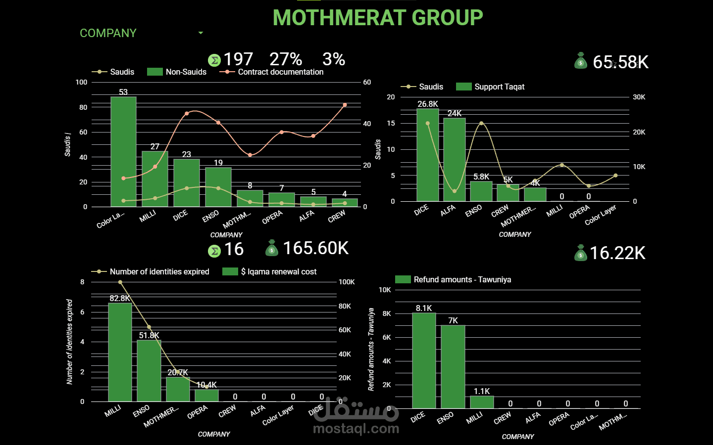 عمل تحليل بيانات ماليه و الامور الماديه و تكيلف و عده امور خاصه بالموظيف و المال و داش بورد لشركه مثمرات من خلال جوجل داتا استوديو google data