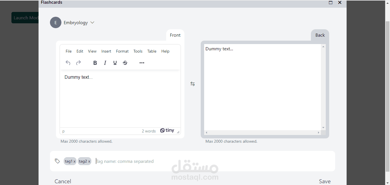المشروع عبارة عن بطاقات ذات وجهين (Front & Back) .