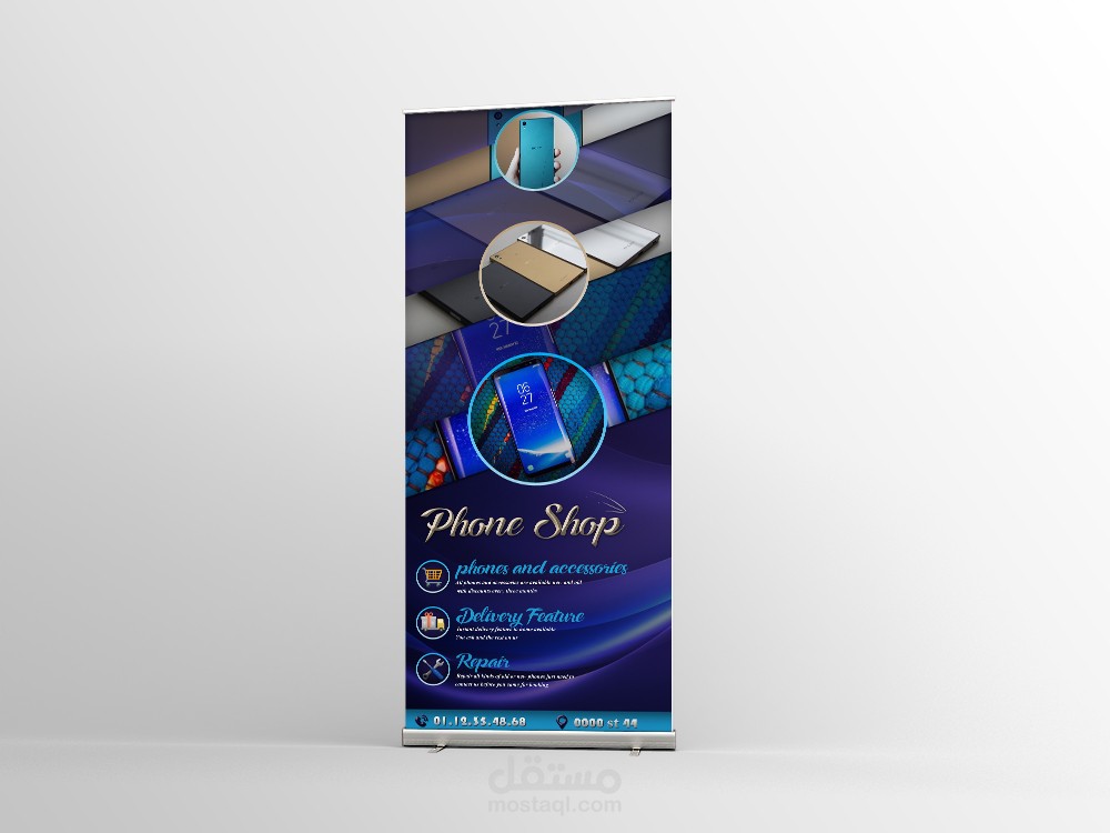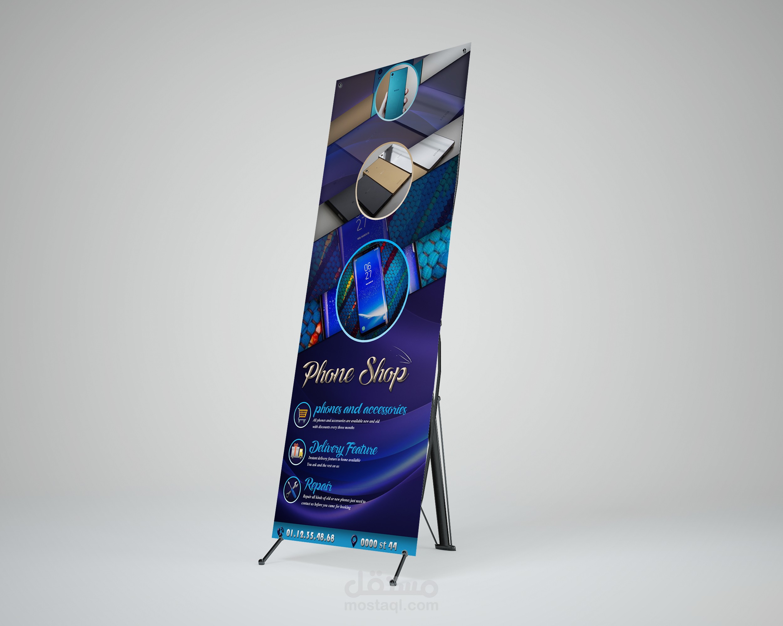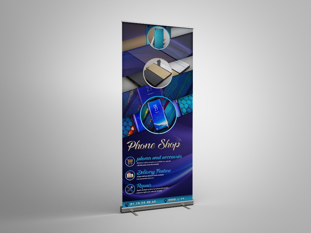 تصميم أشهار أ اعلان على شكل roll up (راية) لجميع الاصناف (محلات/ شركات/ او اي قطاع يحتاج لهذا النوع من الاشهارات