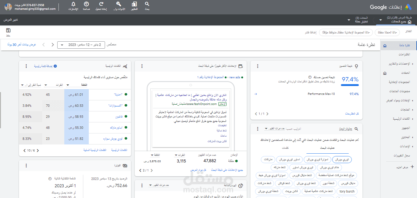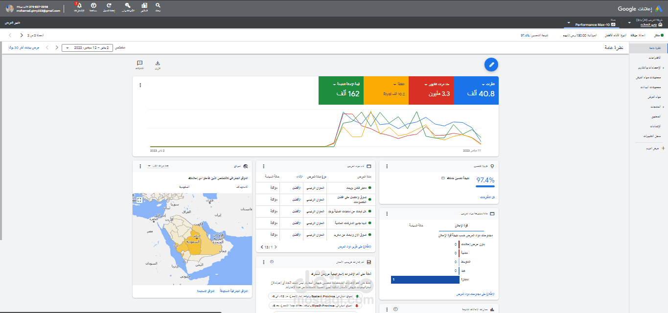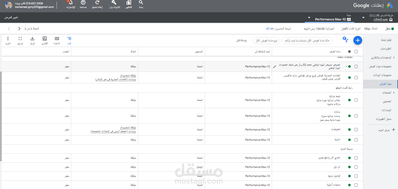 تم استلام الحساب الاعلاني وربطه مع Google analytics و google tag manager و ربط جميع الاحالات لتتبعها بالموقع
