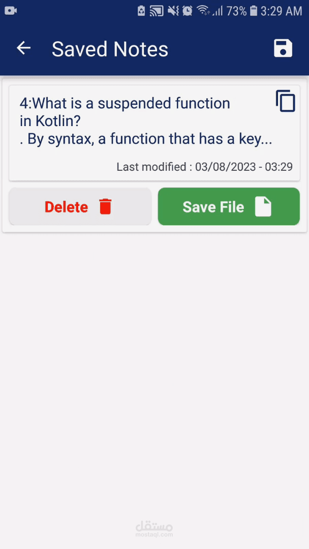مع امكانية التعديل على هذا النص او حذفه او نسخه كما يمكن ايضا حفظ هذا النص في ملف word على الهاتف