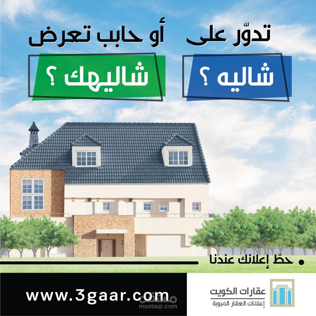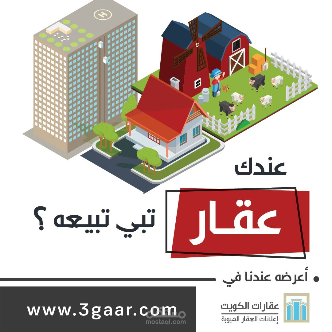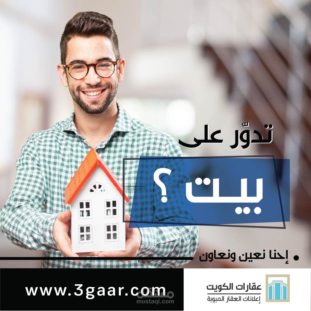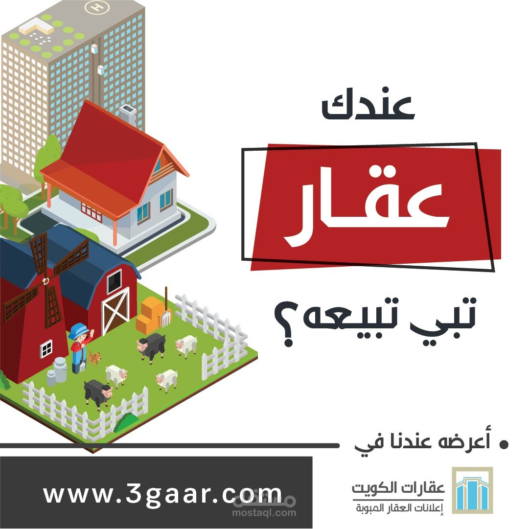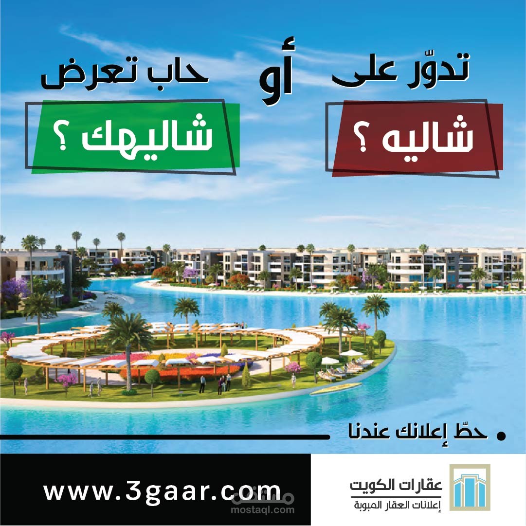 مجموعة من التصاميم الإعلانية الخاصة بشبكة الإنستجرام لموقع "عقارات الكويت"